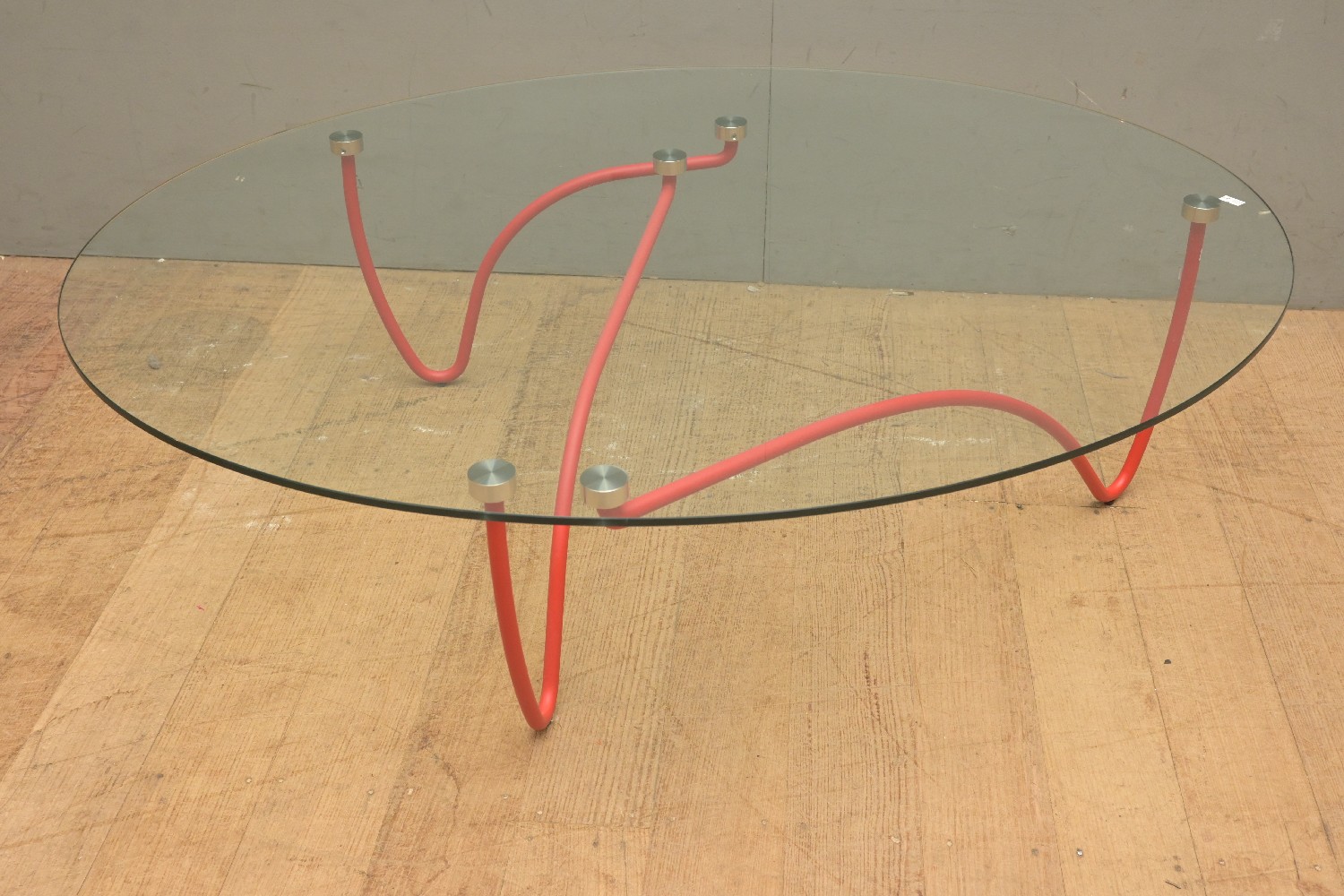 A DESIGNER GLASS COFFEE TABLE FROM THE LIGNE ROSET COLLECTION (32H X 110W X 91D CM) (LEONARD JOEL DELIVERY SIZE: X-LARGE)