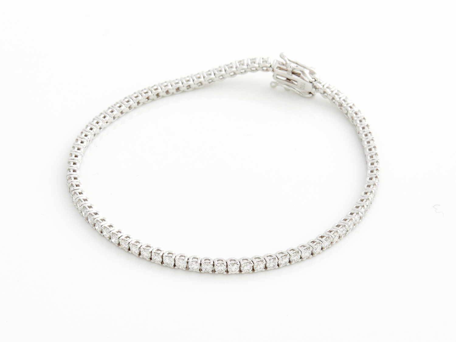 A DIAMOND LINE BRACELET IN 18CT WHITE GOLD