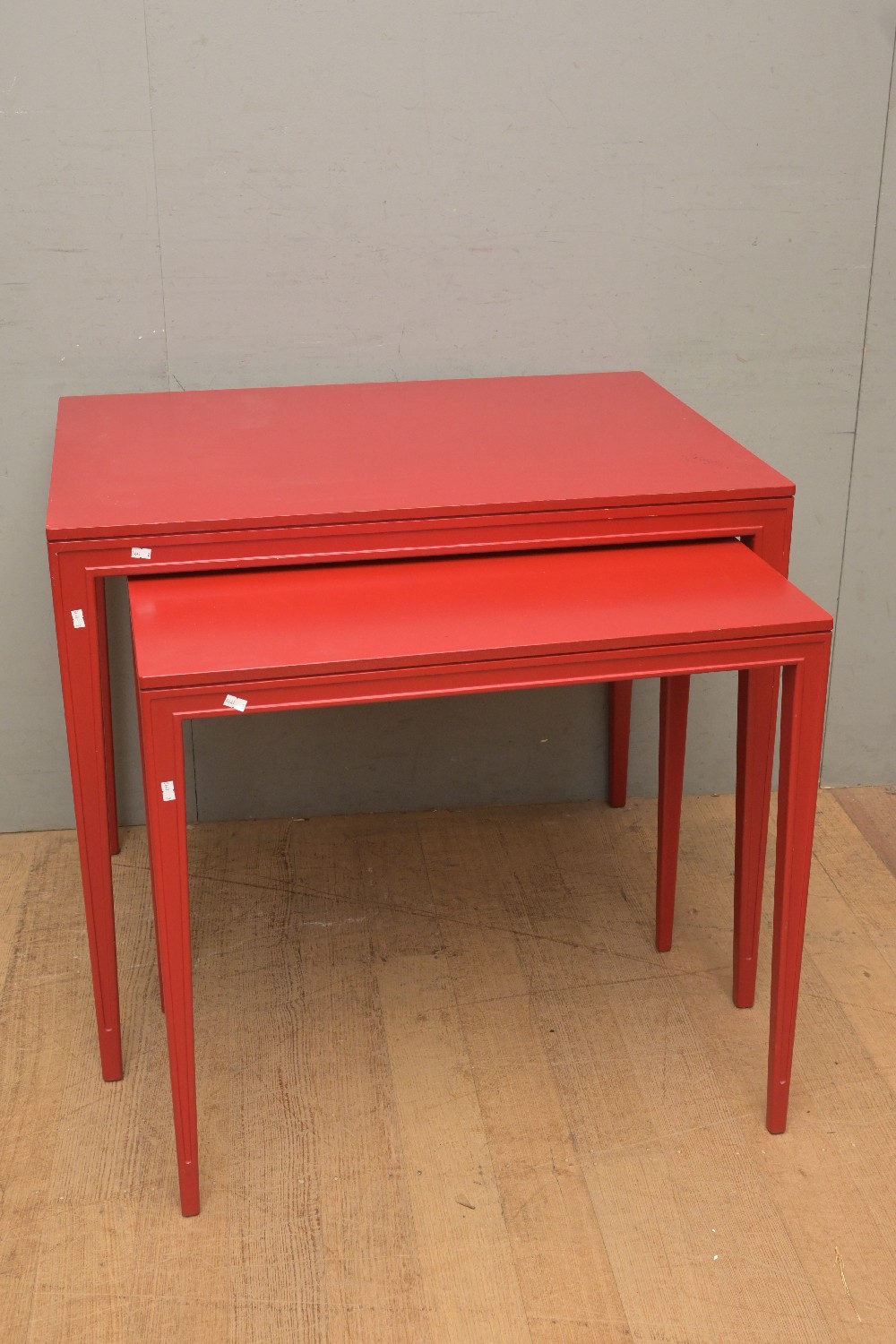 A NEST OF TWO RETRO RED PAINTED TABLES (A/F) (77H X 90W X 66D CM) (LEONARD JOEL DELIVERY SIZE: X-LARGE)