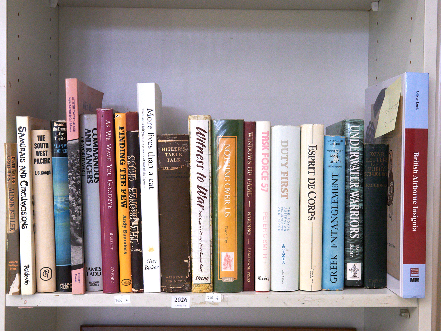 A SHELF OF WWII REFERENCE INCLUDING DAVID HAY - NOTHING OVER US, DUTY FIRST, ESPIRIT DE CORPS AND BRITISH AIRBORNE INSIGNIA, LEONARD JOEL DELIVERY SIZE: MEDIUM