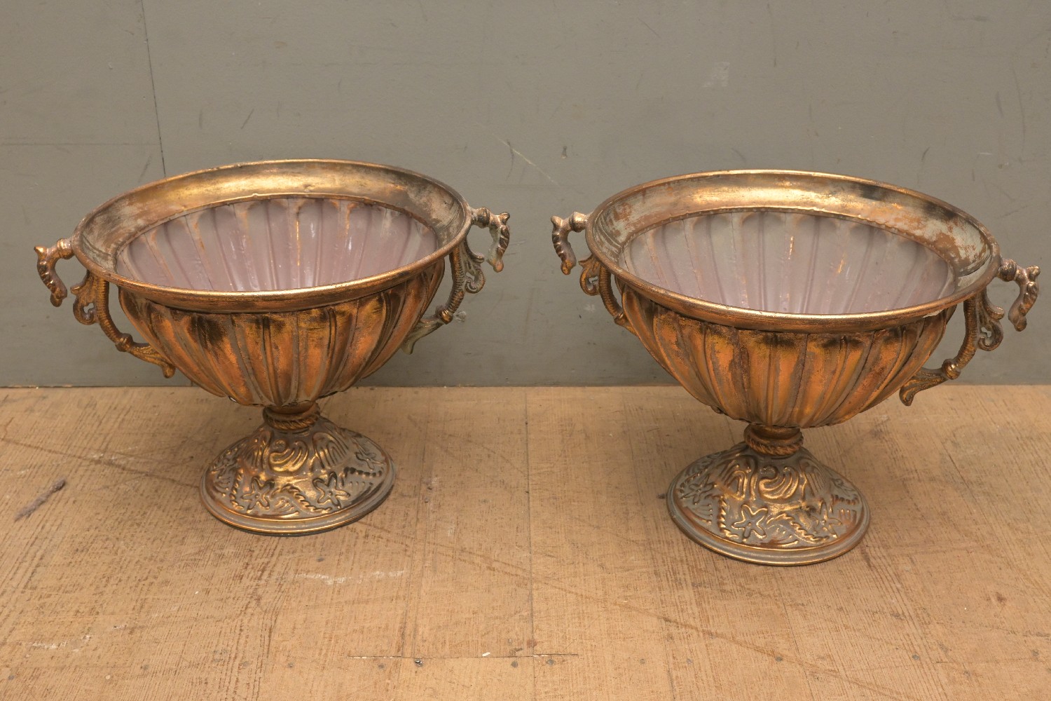 A PAIR OF BRASS EFFECT CHALLICES (28H X 40DIAM CM) (LEONARD JOEL DELIVERY SIZE: MEDIUM)