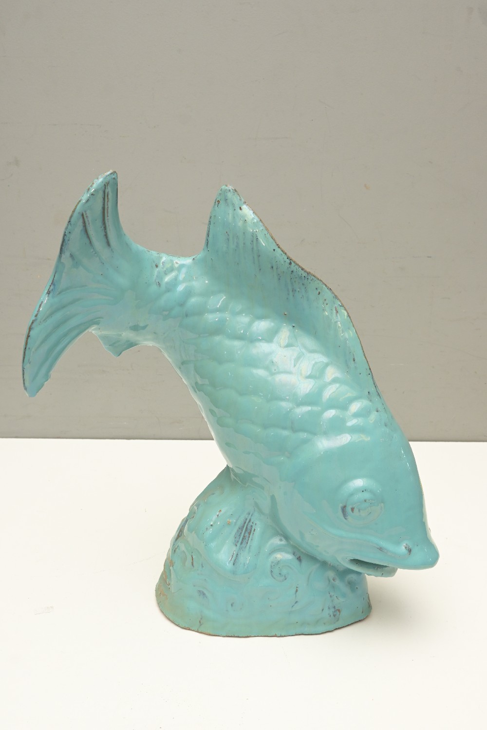 A BLUE CERAMIC FISH STATUE (51H CM) (LEONARD JOEL DELIVERY SIZE: LARGE)