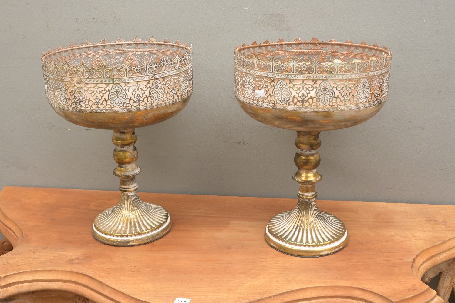 A PAIR OF METAL BRASS EFFECT CHALLIS (40H X 30DIA CM) (LEONARD JOEL DELIVERY SIZE: MEDIUM)
