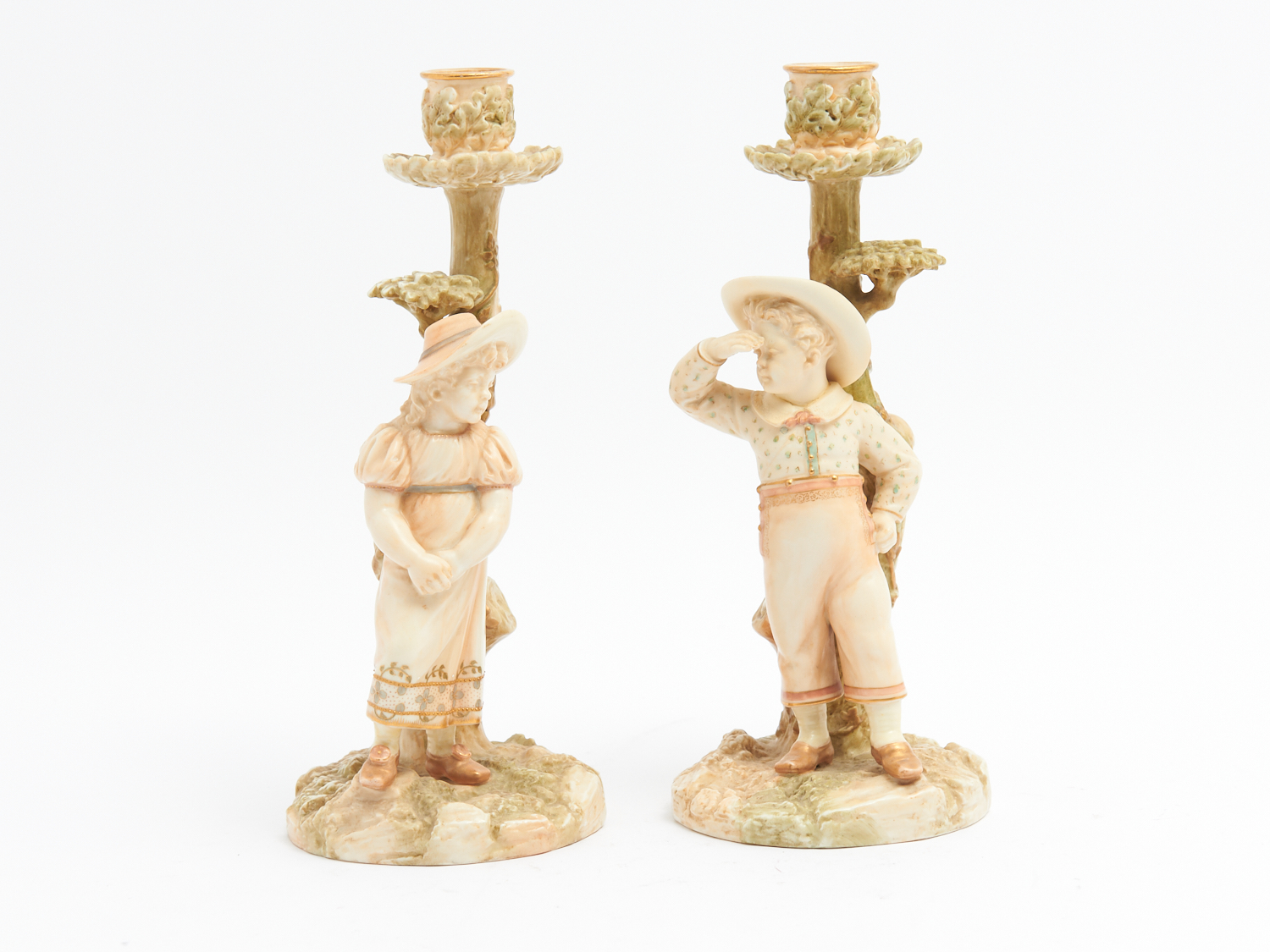 A PAIR OF R.W. HADLEY FIGURAL CANDLESTICKS H.26CM (A/F), LEONARD JOEL DELIVERY SIZE: MEDIUM