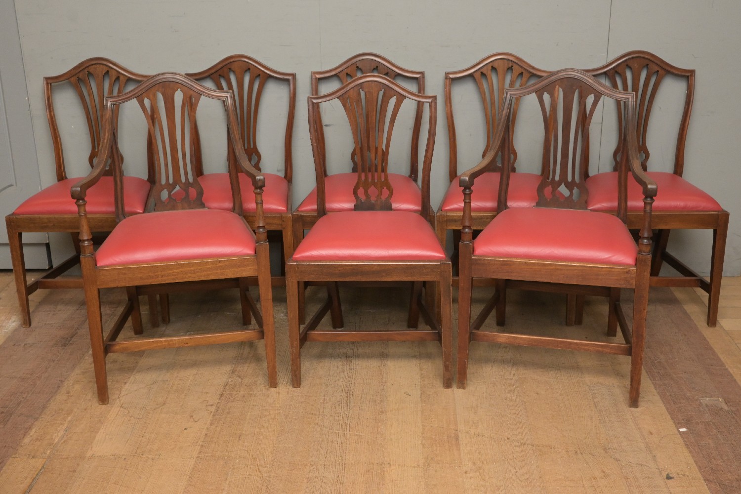 A SET OF EIGHT GEORGIAN DINING CHAIRS (95H X 56W X 47D CM) (PLEASE NOTE THIS HEAVY ITEM MUST BE REMOVED BY CARRIERS AT THE CUSTOMER'S EXPENSE. LEONARD JOEL STAFF CANNOT ASSIST CARRYING THIS ITEM) (X-LARGE ITEM)