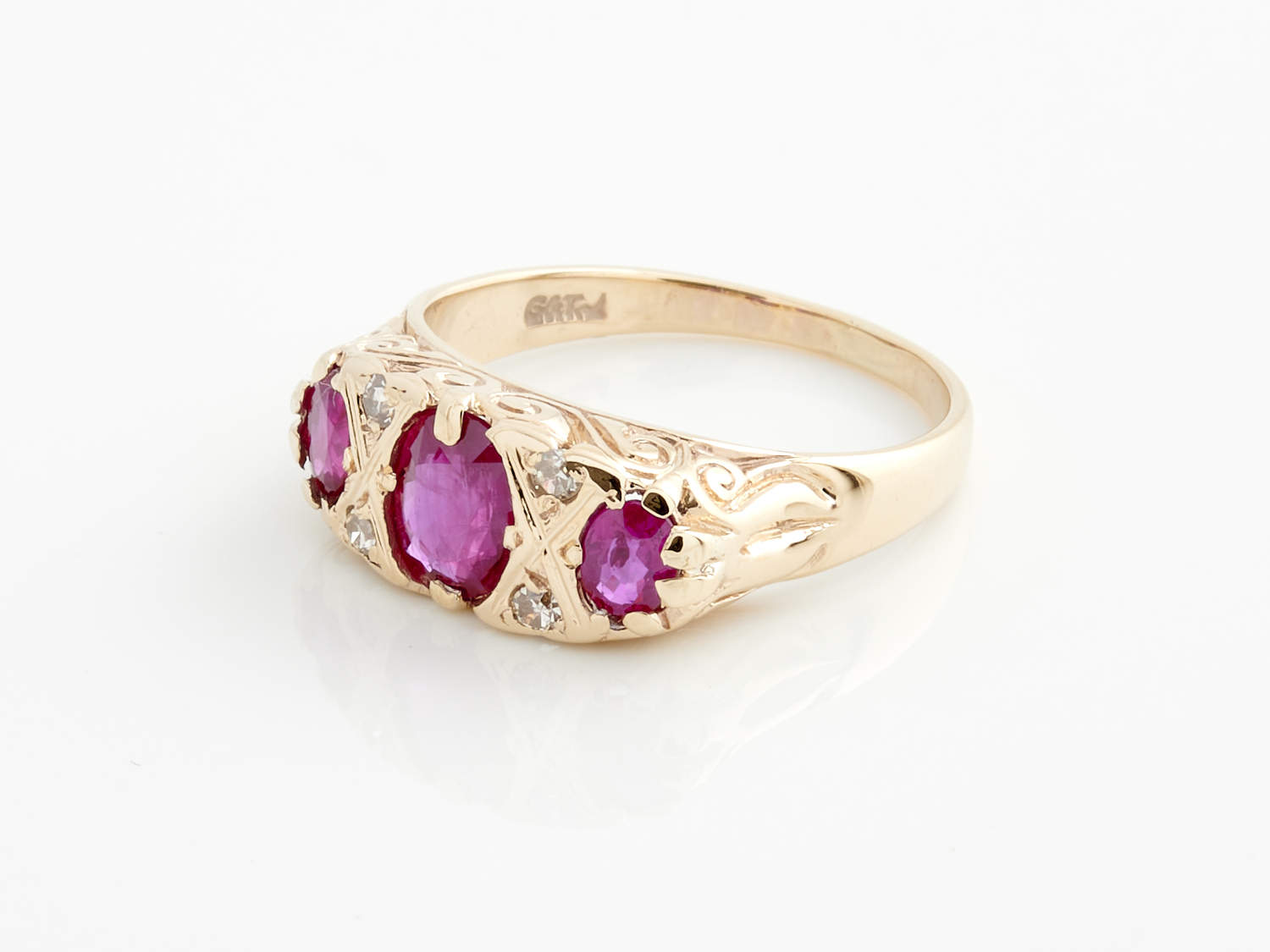 A RUBY AND DIAMOND RING IN 9CT GOLD, SIZE O, LONDON HALLMARKS, CIRCA 1975 4.1GMS