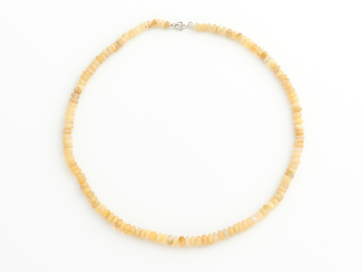 A STRAND OF ETHIOPIAN OPAL BEADS TO A CLASP IN SILVER, 440MM