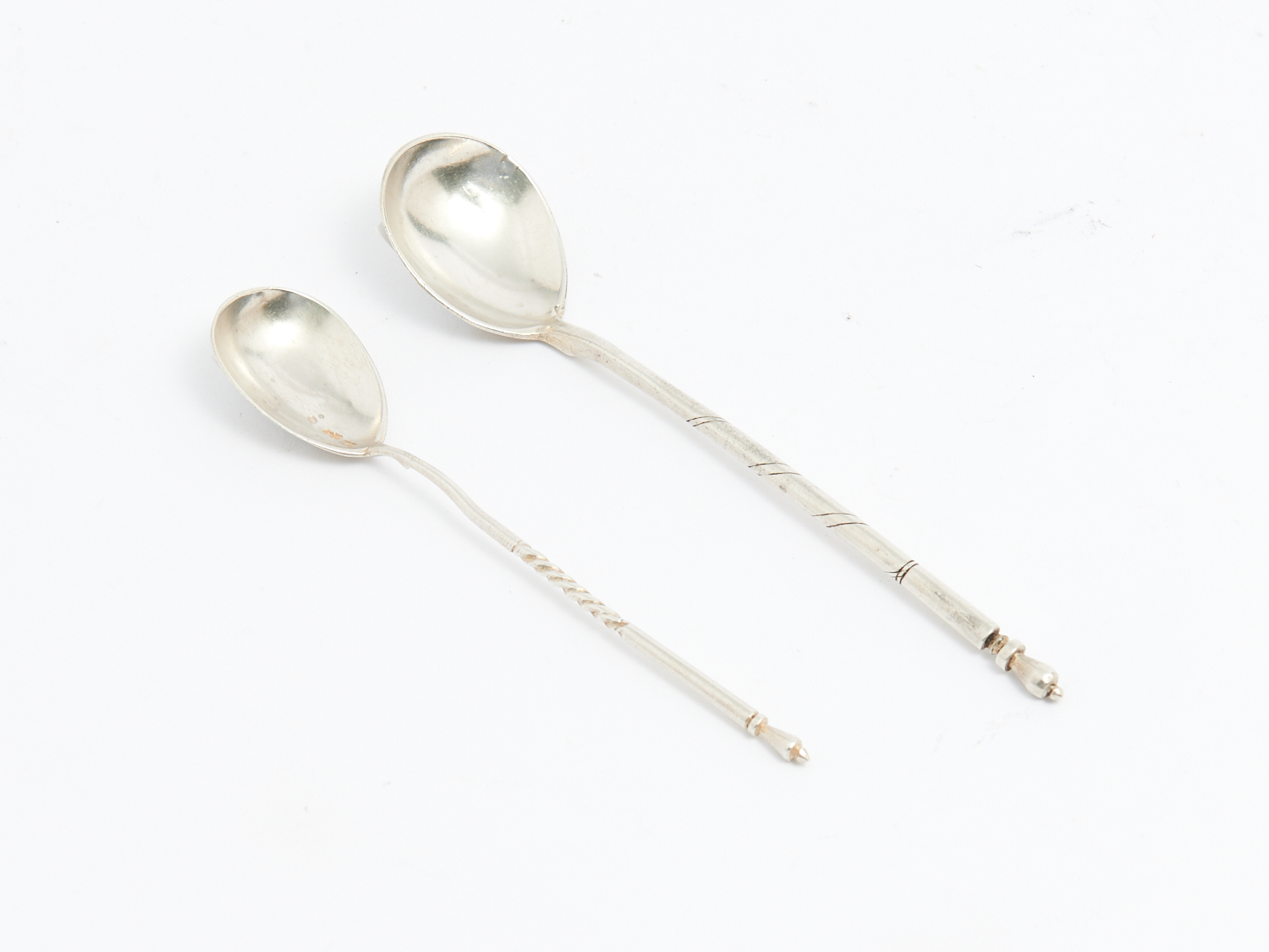 TWO RUSSIAN 84 SILVER SPOONS 36G L.14.5CM (LONGEST), LEONARD JOEL DELIVERY SIZE: SMALL