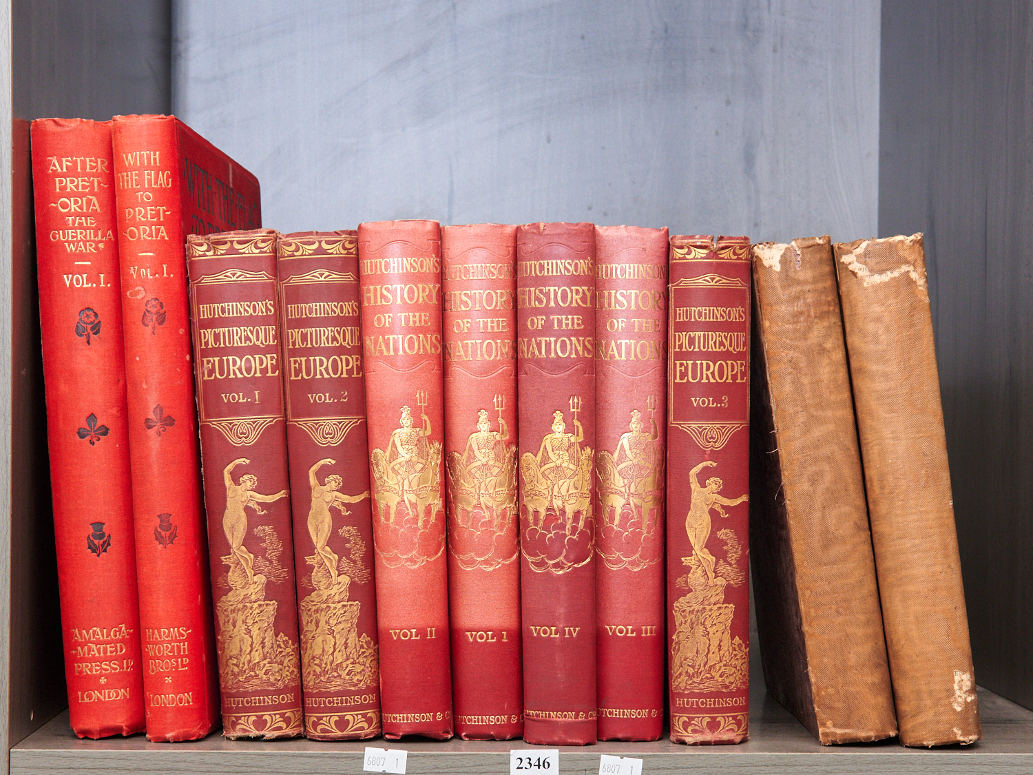 A SHELF OF ANTIQUE BOOKS INCLUDING THE FLAG OF PRETORIA, LEONARD JOEL DELIVERY SIZE: MEDIUM