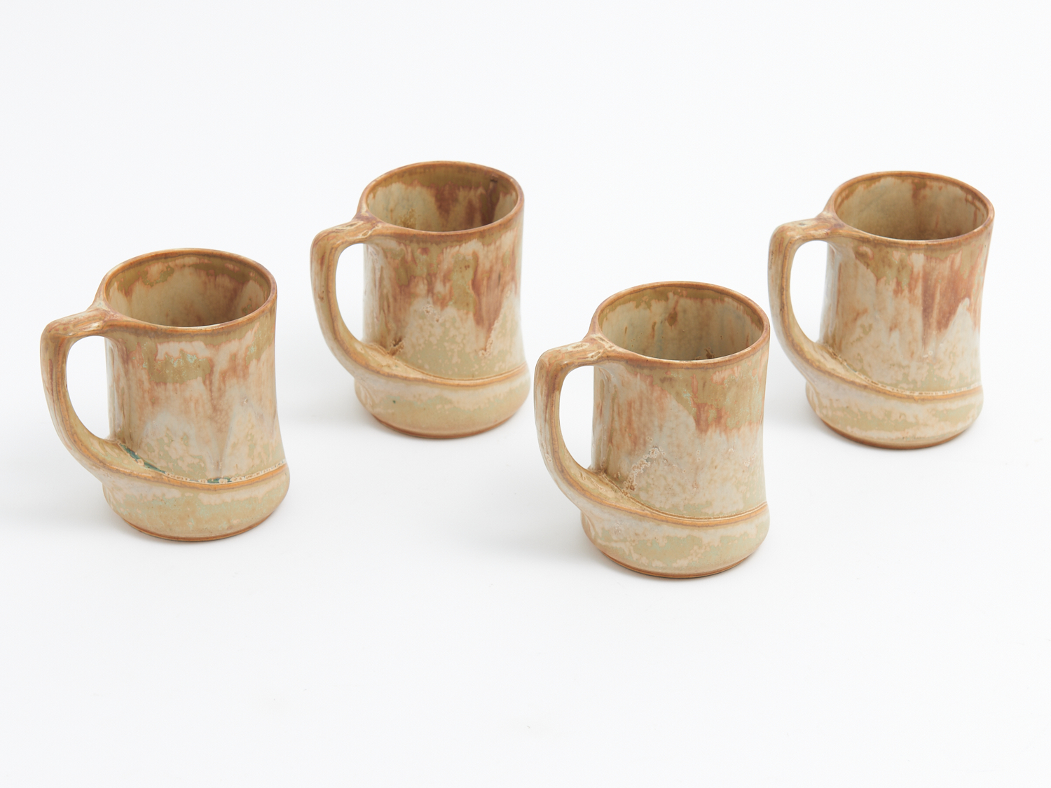 A SET OF FOUR BELGIAN ART NOUVEAU CERAMIC MUGS H.10CM, LEONARD JOEL DELIVERY SIZE: MEDIUM
