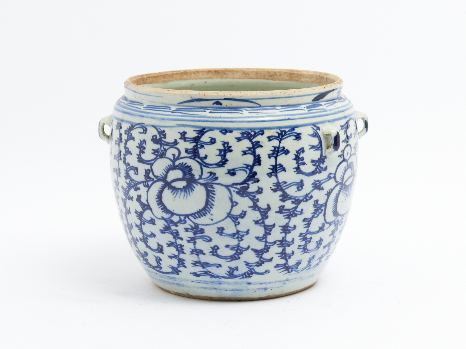 A CHINESE BLUE AND WHITE PLANTER, REMNANTS OF SEAL TO BASE H.19CM, LEONARD JOEL DELIVERY SIZE: MEDIUM