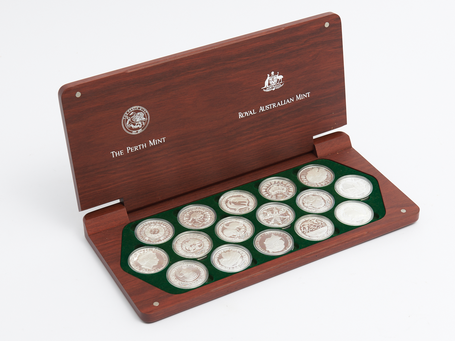 A BOXED SET OF ROYAL AUSTRALIAN MINT/PERTH MINT SYDNEY 2000 OLYMPIC GAMES 99.9 SILVER COINS 574G (INCLUDING PLASTIC CASES) L.34.5CM (BOX), LEONARD JOEL DELIVERY SIZE: SMALL