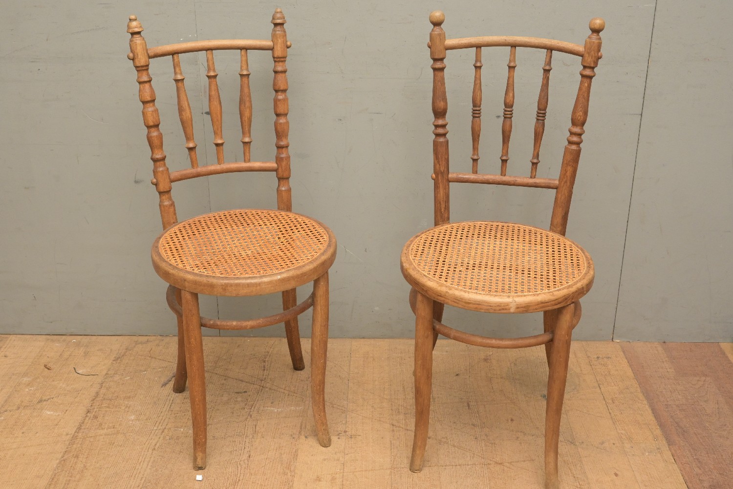 A PAIR OF EARLY 20TH CENTURY BENTWOOD CHAIRS WITH RATTAN SEATS (A/F) (94H X 42W X 47D CM) (LEONARD JOEL DELIVERY SIZE: LARGE)
