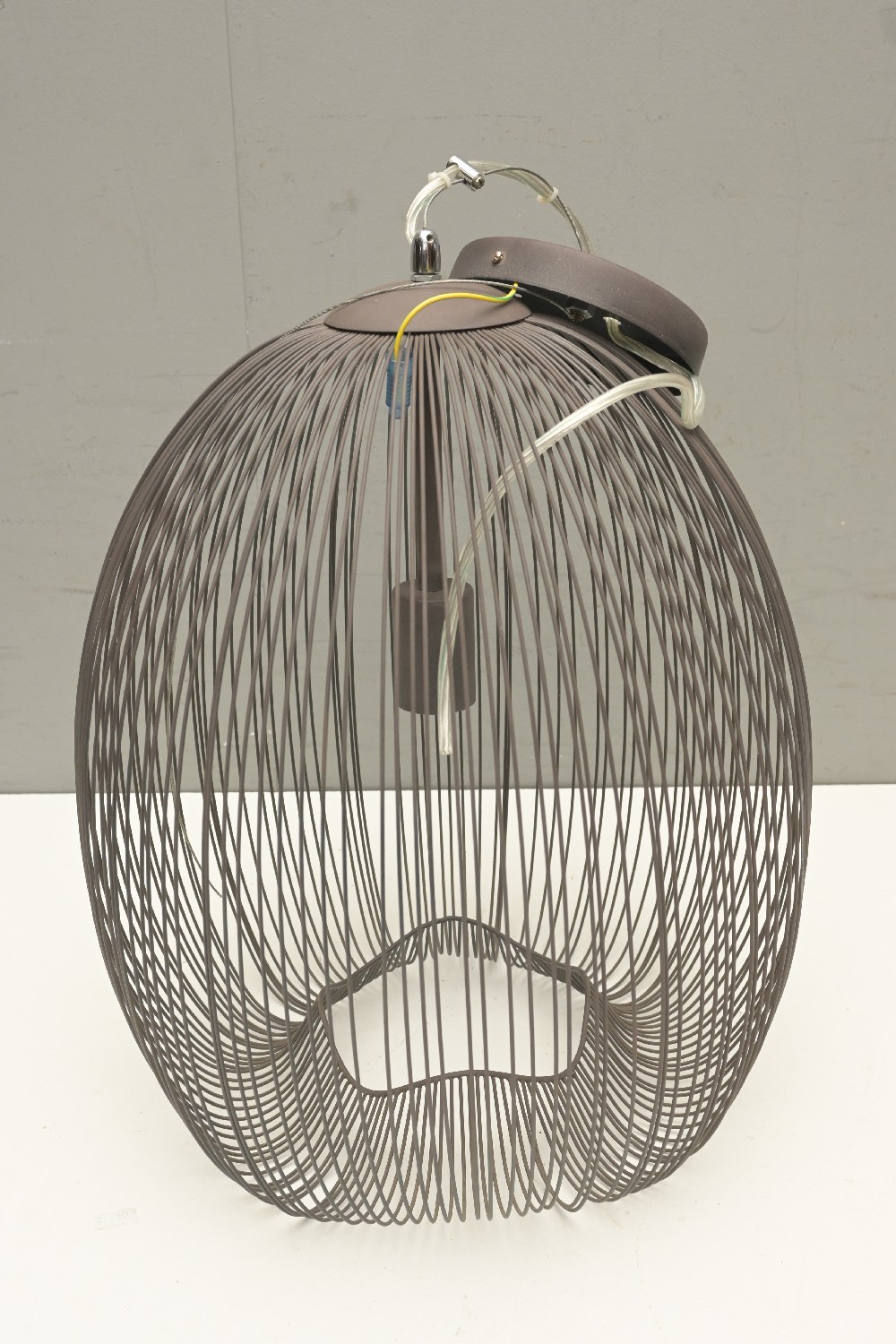 A WIRE FORM HANGING PENDANT LIGHT IN BIRDCAGE FORM (51H X 36D CM) (LEONARD JOEL DELIVERY SIZE: MEDIUM)