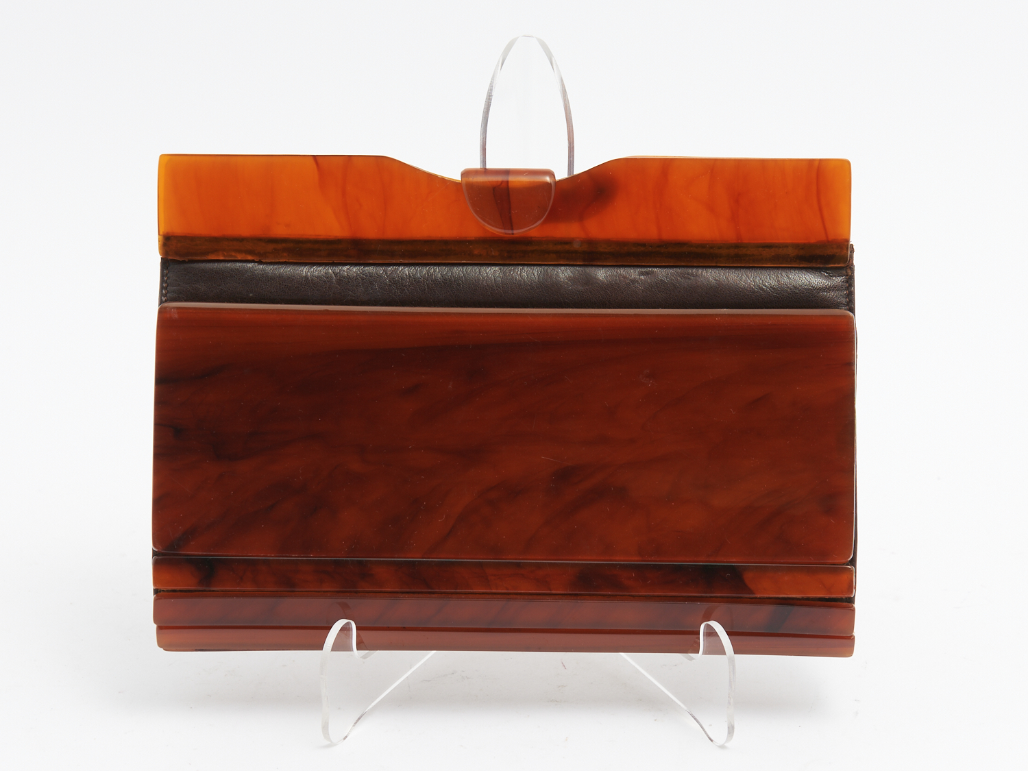 A VINTAGE ITALIAN HANDBAG BY MARISSA SILITO FOR COLOMBETTI IN FAUX TORTOISE SHELL AND BROWN LEATHER W.22CM, LEONARD JOEL DELIVERY SIZE: SMALL