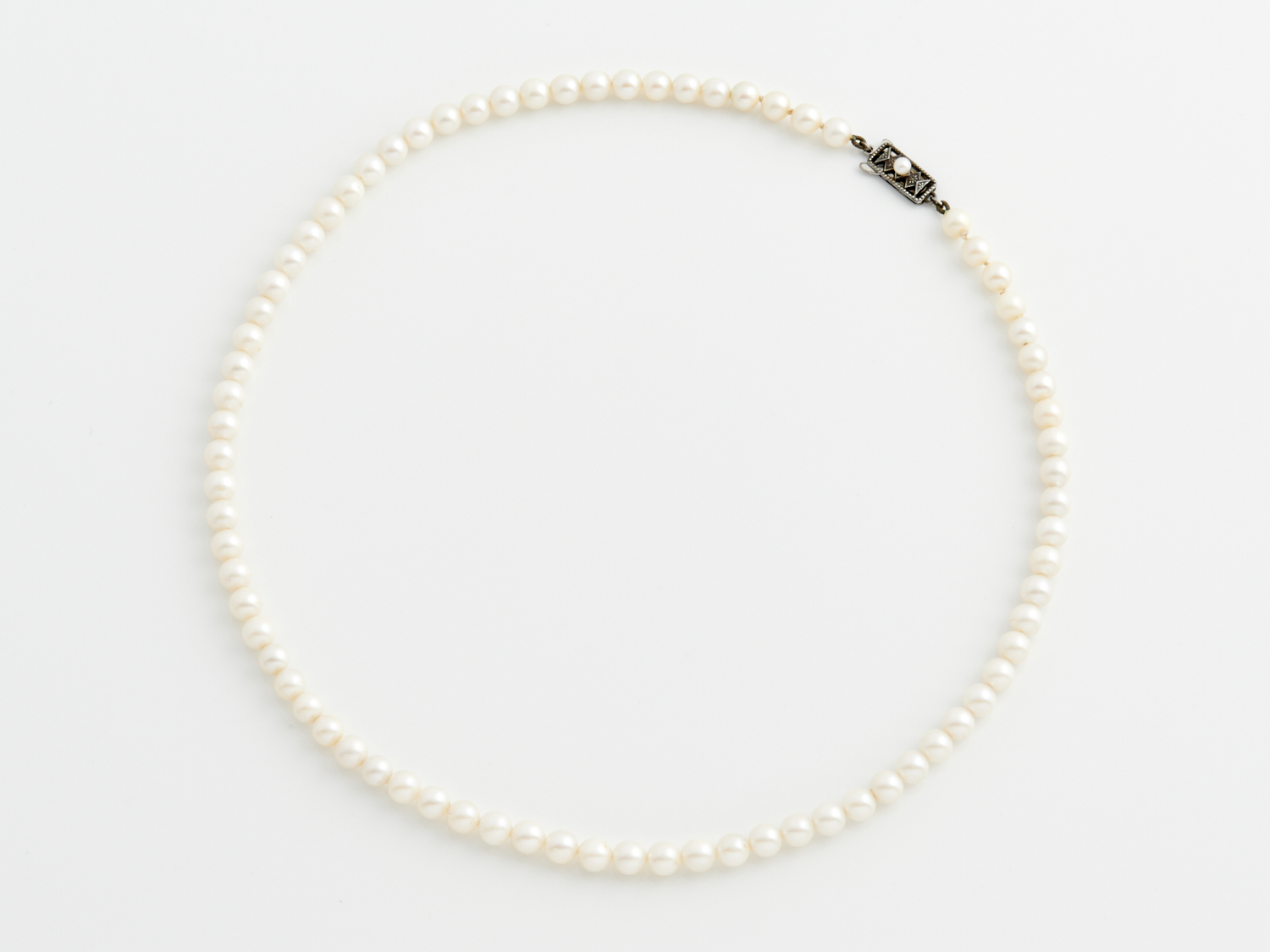 MIKIMOTO, A STRAND OF PEARLS TO A PEARL AND SILVER CLASP, 500MM, ACCOMPANIED BY A BOX