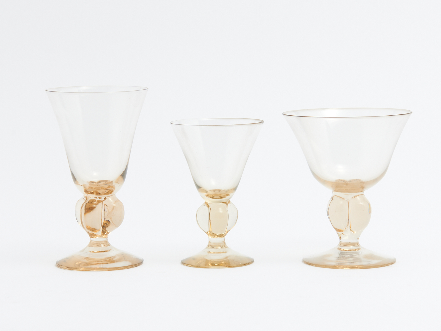 A SET OF SWEDISH SKROFF VINTAGE GLASSWARE INCL. SIX SORBET, SIX SHERRY AND SIX LIQUER GLASSES H.10CM (TALLEST) (A/F), LEONARD JOEL DELIVERY SIZE: LARGE