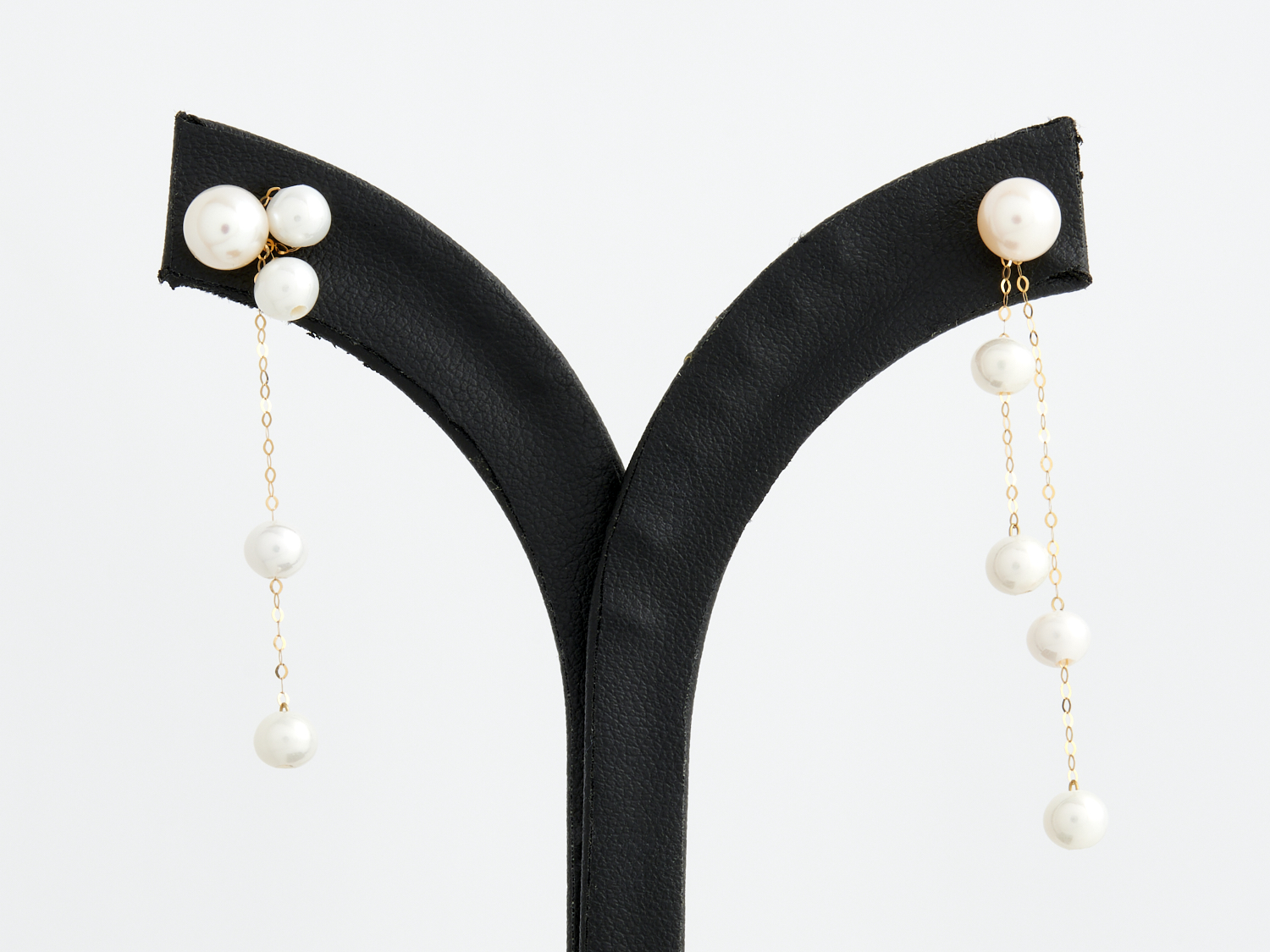 A PAIR OF DROP PEARL EARRINGS IN 18CT GOLD TO POST AND BUTTERFLY FITTINGS, 50MM