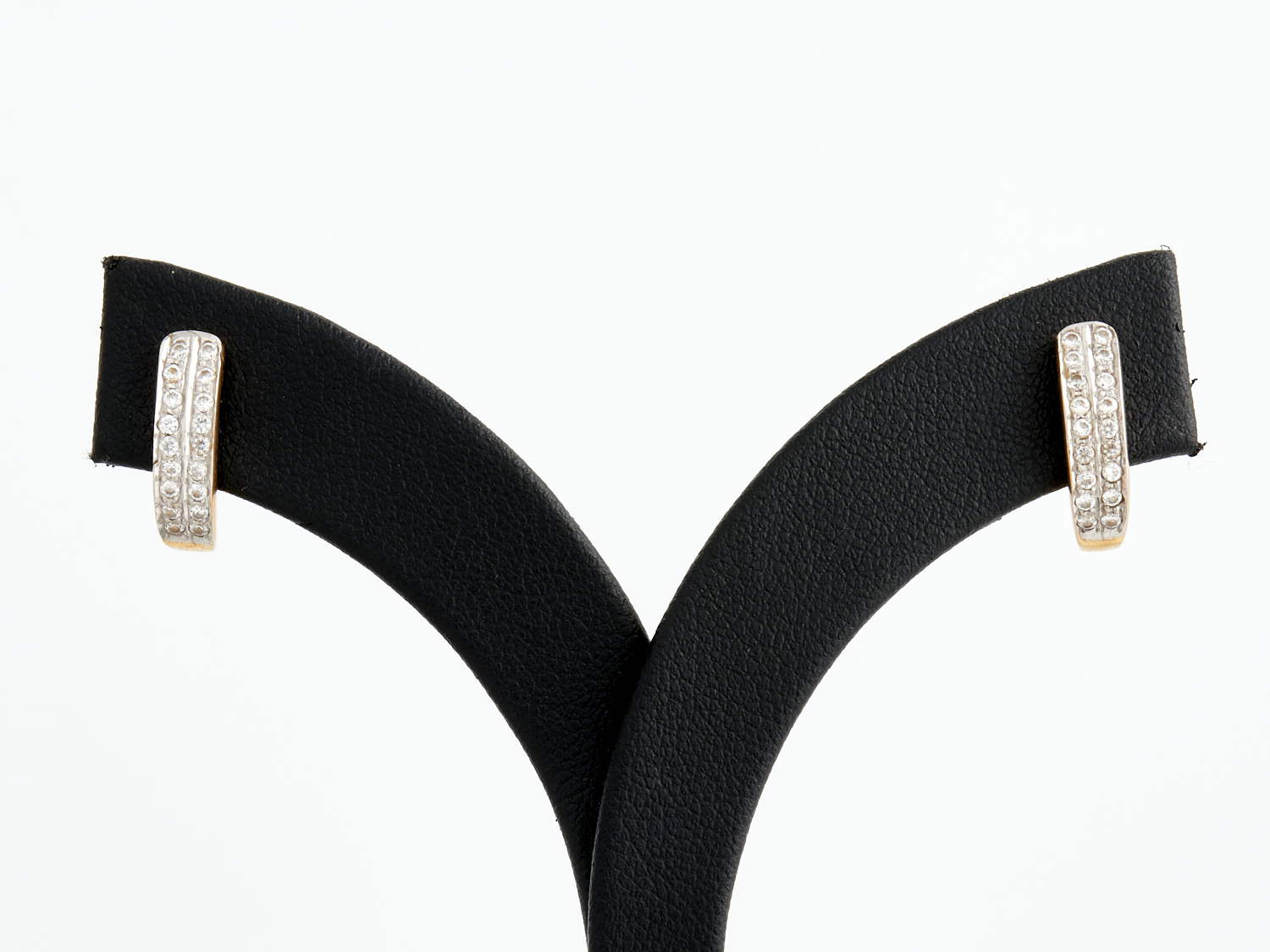 A PAIR OF WHITE STONE EARRINGS IN 18CT GOLD, TO POST AND SCREW BACK FITTINGS