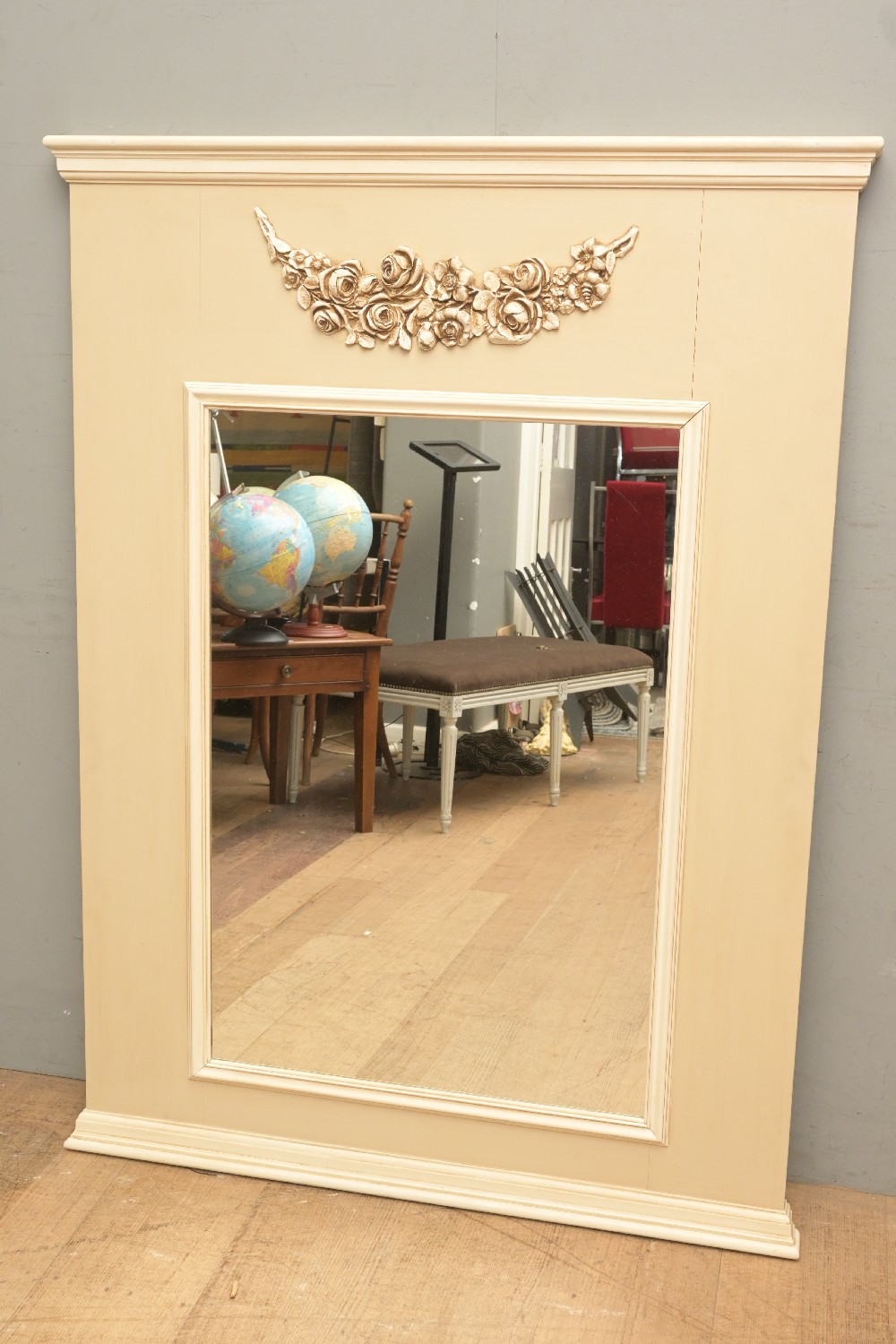 A FRENCH PROVINCIAL STYLE MIROR WITH CARVED GARLAND (143H X 106W CM) (LEONARD JOEL DELIVERY SIZE: X-LARGE)