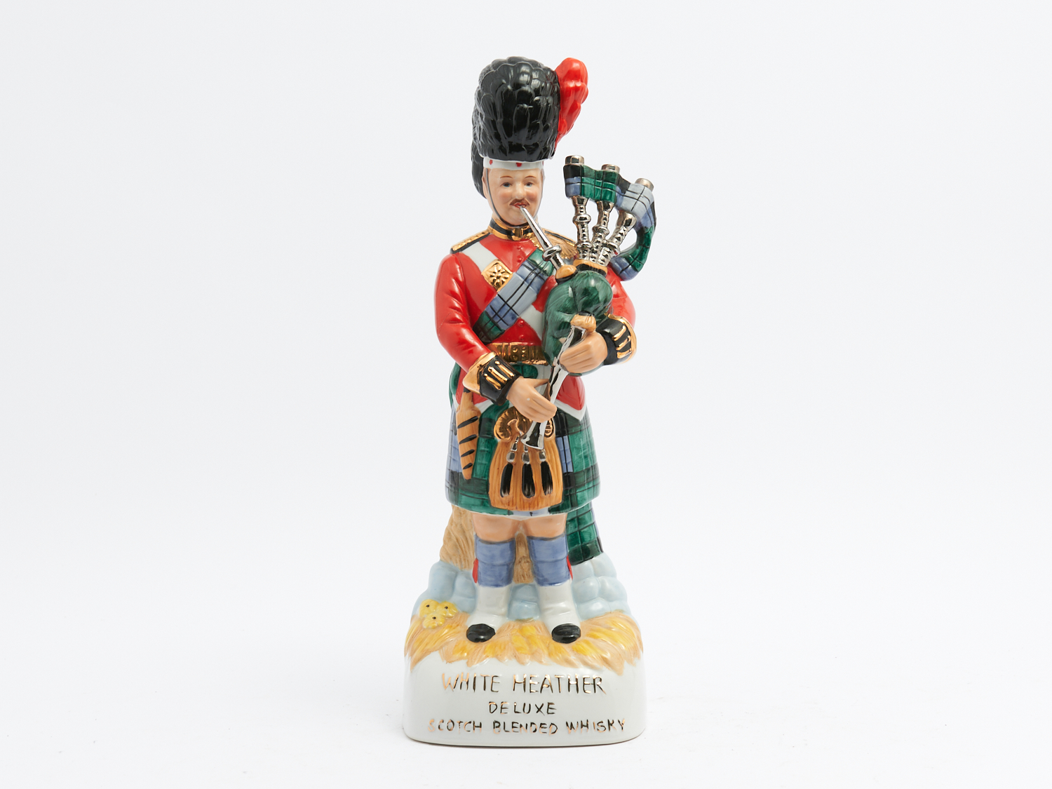 A WHITE HEATHER FIGURAL WHISKY DECANTER OF A SCOTTISH BAGPIPER H.38CM, LEONARD JOEL DELIVERY SIZE: MEDIUM