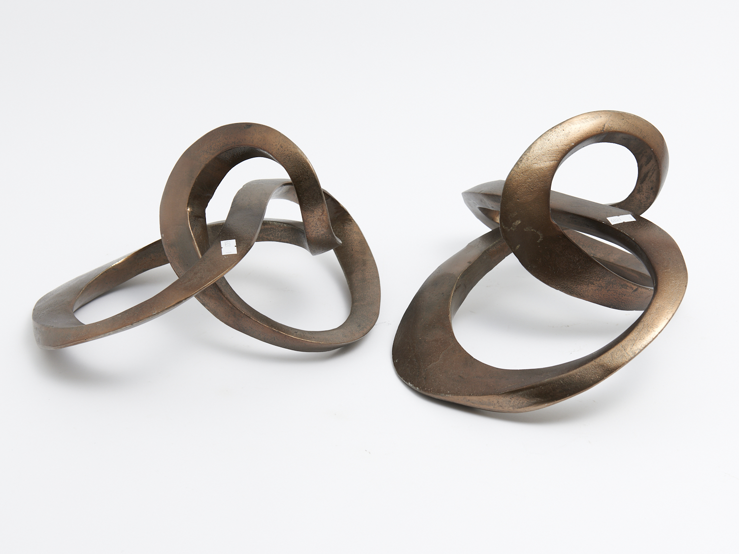 TWO CAST ALUMINIUM OPTICAL ILLUSION SCULPTURES H.20CM (EACH), LEONARD JOEL DELIVERY SIZE: LARGE