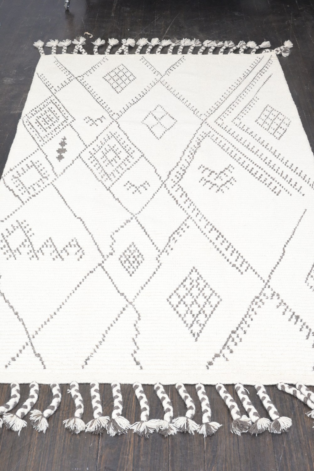 A QUALITY GABBEH IN MOROCCAN STYLE WITH A NEUTRAL BACKGROUND AND FINE CLASSIC TASSLES, 100% WOOL, HIGH DENSITY PILE, ALL HANDKNOTTED IN INDIA (285 X 155 CM) (LEONARD JOEL DELIVERY SIZE: X-LARGE)