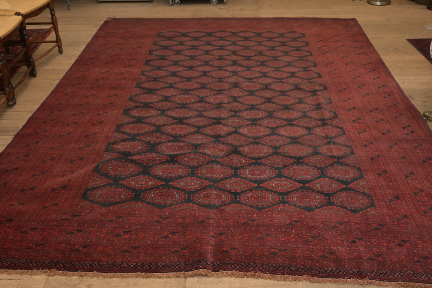 A FINE AFGHAN TURKOMAN RUG IN A DIAMOND CUT DESIGN, 100% NATURAL WOOL, WOOL WEFT AND WOOL KNOTTING, ALL HANDKNOTTED IN AFGHANISTAN (363 X 241 CM) (LEONARD JOEL DELIVERY SIZE: X-LARGE)