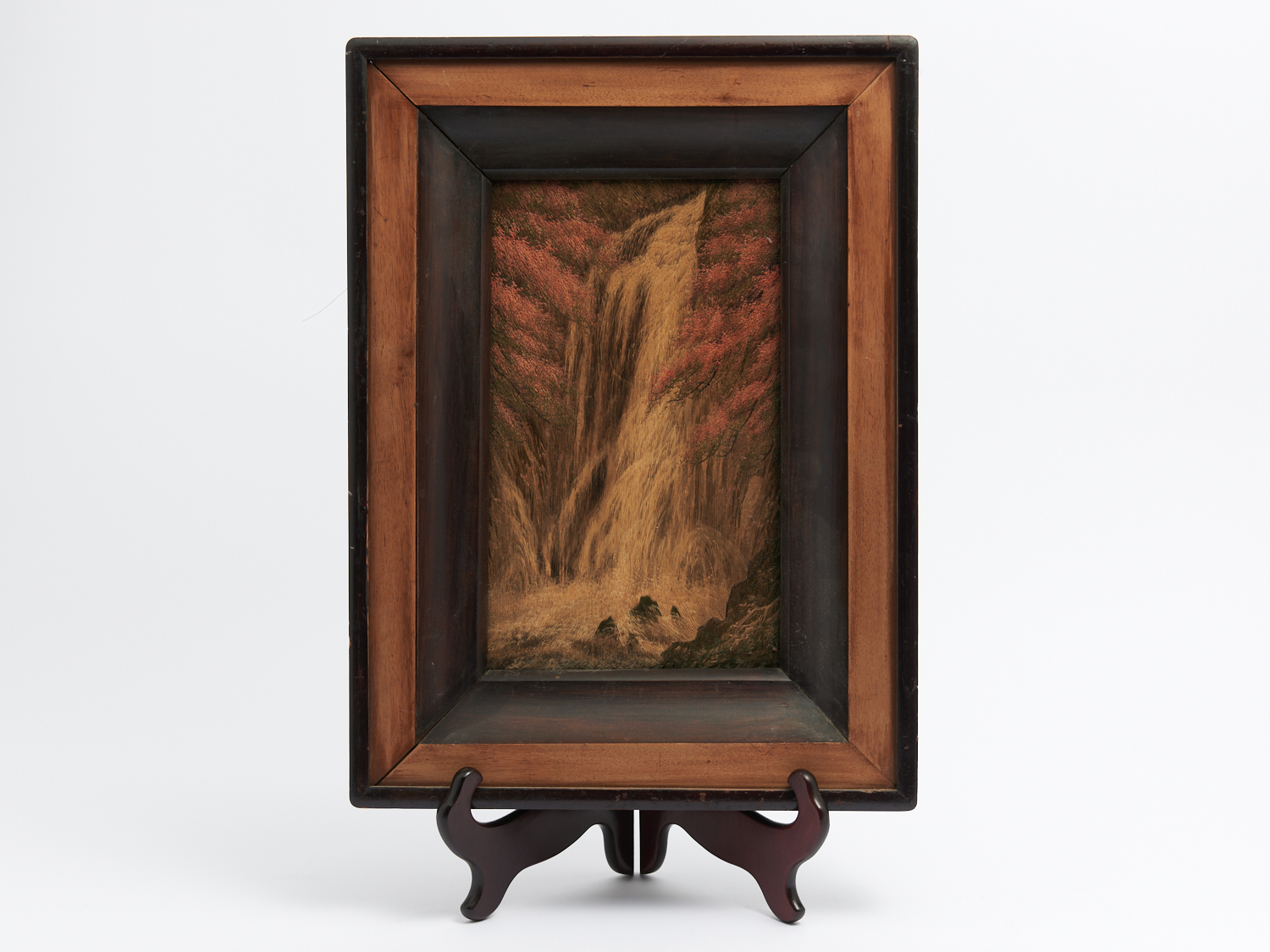 A JAPANESE FRAMED SILK NEEDLEWORK OF A WATERFALL SCENE CIRCA 1920 47 X 34.5CM, LEONARD JOEL DELIVERY SIZE: SMALL