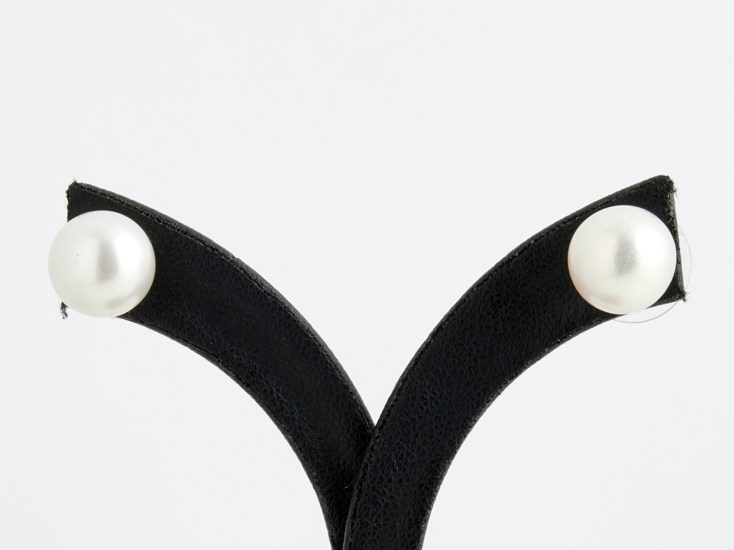 A PAIR OF PEARL STUDS TO POST FITTINGS IN 18CT GOLD, THE PEARLS MEASURING APPROXIMATELY 10.2MM, 3.63GMS