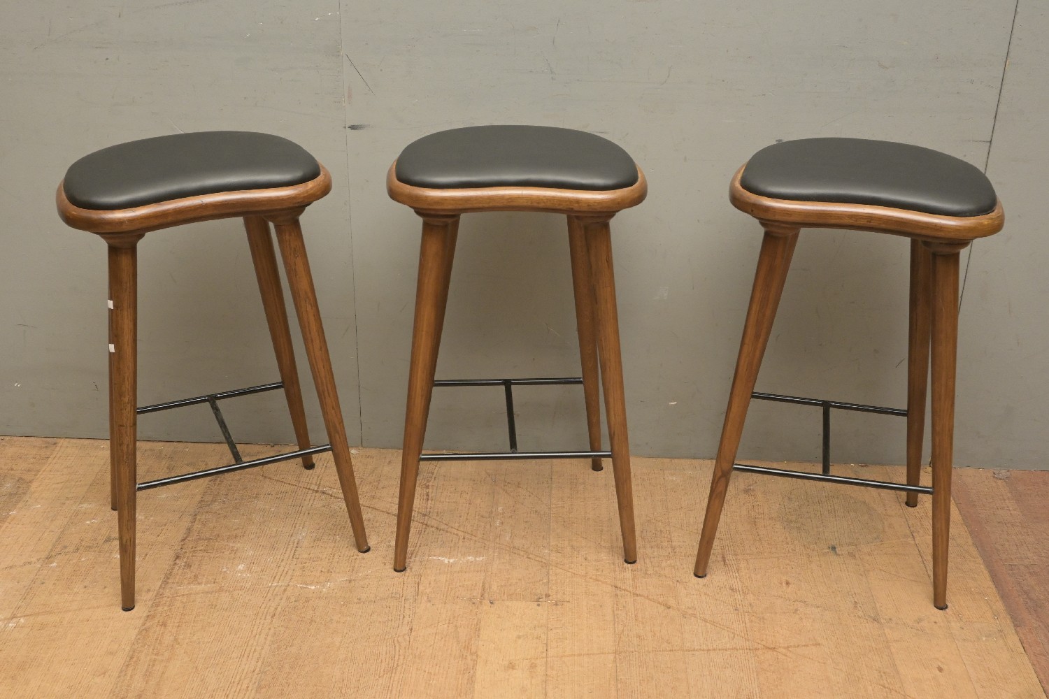 A SET OF THREE KLEBER STYLE OAK BARSTOOLS (70H X 41W X 30D CM) (LEONARD JOEL DELIVERY SIZE: X-LARGE)