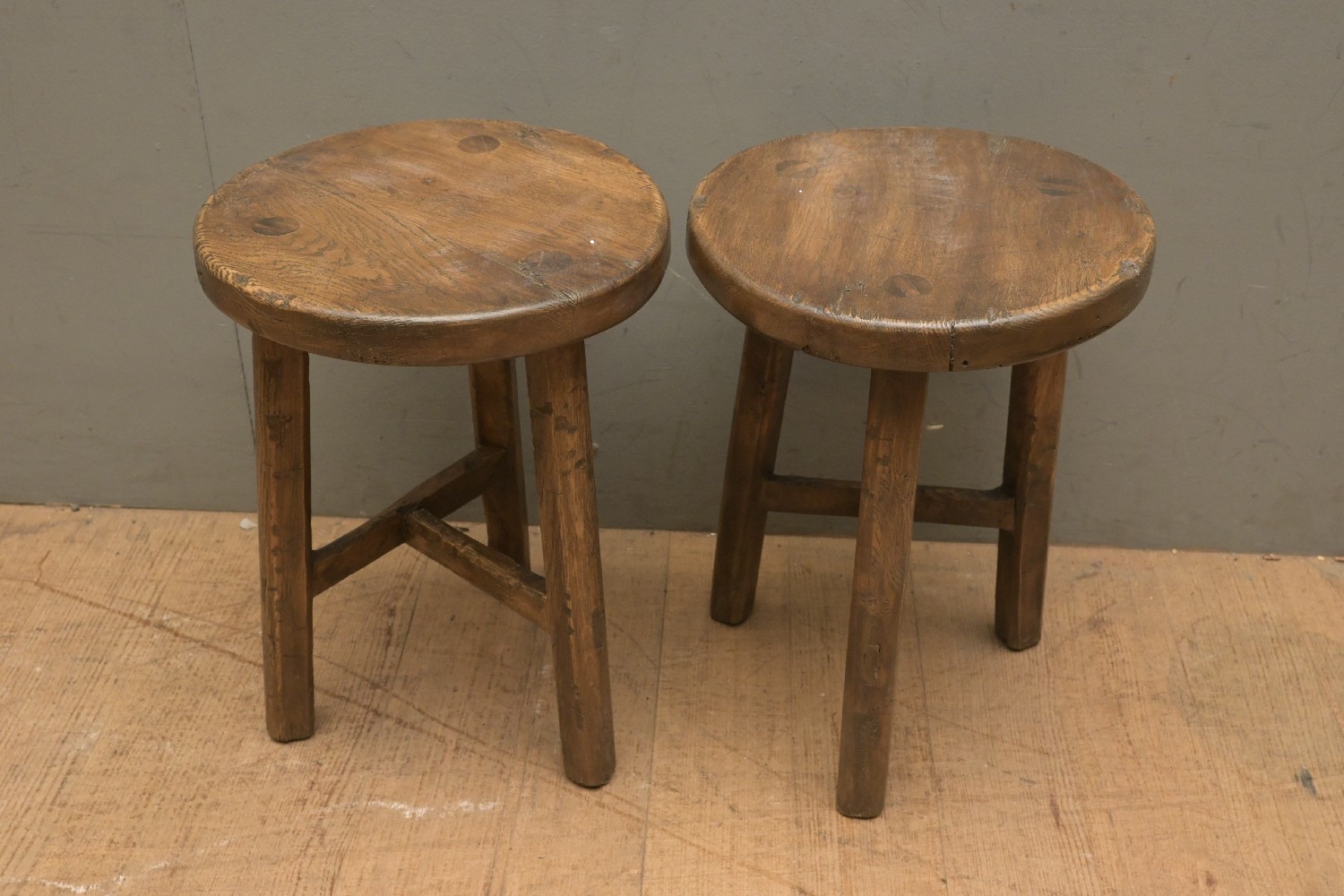 A PAIR OF FRENCH STYLE OAK MILKING STOOL (43H X 31DIAM CM) (LEONARD JOEL DELIVERY SIZE: LARGE)