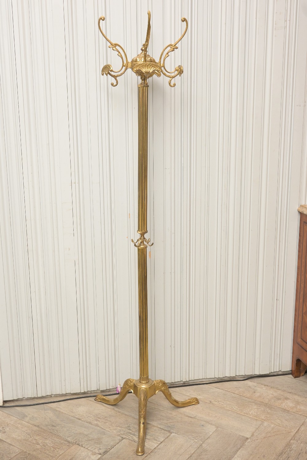 A 70'S SOLID BRASS HAT & COAT STAND (175H X 52DIA CM) (LEONARD JOEL DELIVERY SIZE: LARGE)