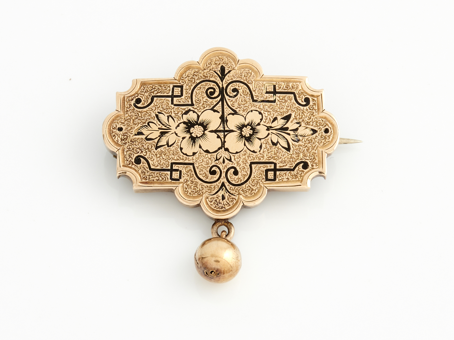 A VICTORIAN ENAMELLED TAILLE D'EPERGNE BROOCH IN 14CT GOLD, 3.84GMS