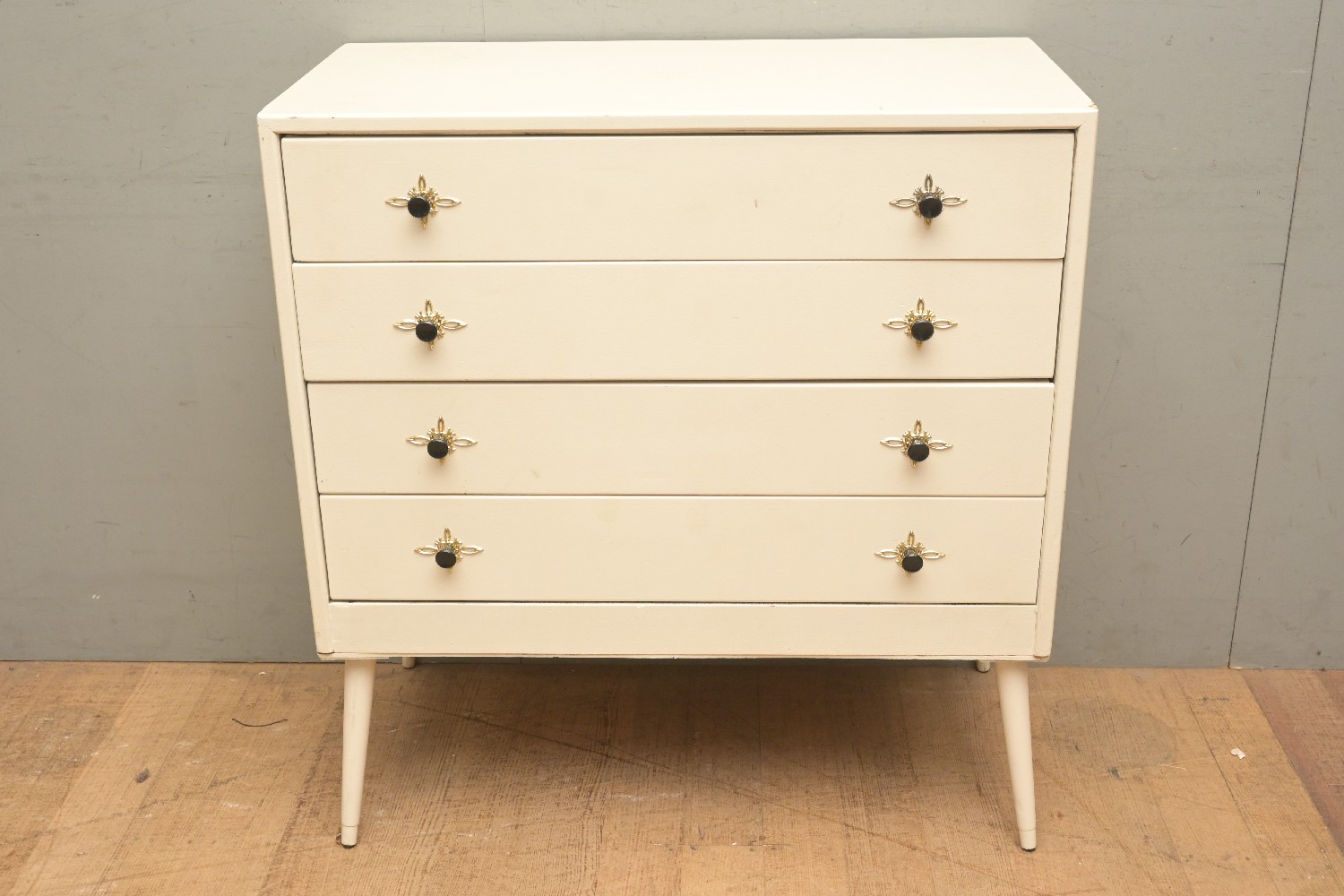 A MID-CENTURY PAINTED FOUR DRAWER CHEST (A/F) (97H X 92W X 47D CM) (LEONARD JOEL DELIVERY SIZE: LARGE)