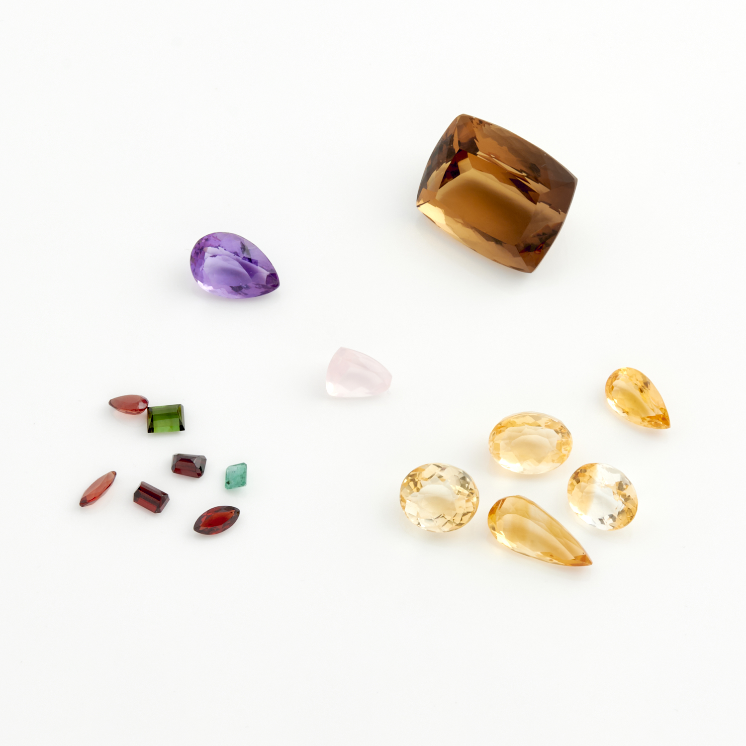 TWO LOOSE GEMSTONES, INCLUDING AMETHYST AND ROSE QUARTZ