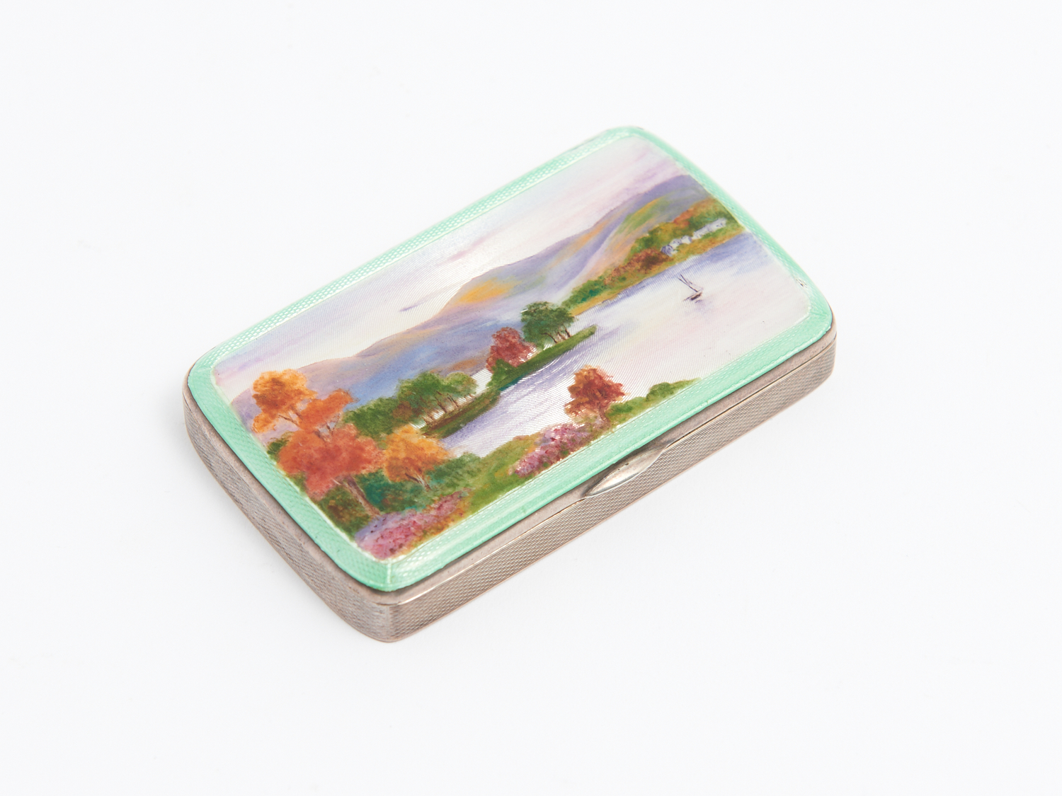 A STERLING SILVER ENAMEL PAINTED SNUFF BOX (A/F)108G L.8.5CM, LEONARD JOEL DELIVERY SIZE: SMALL