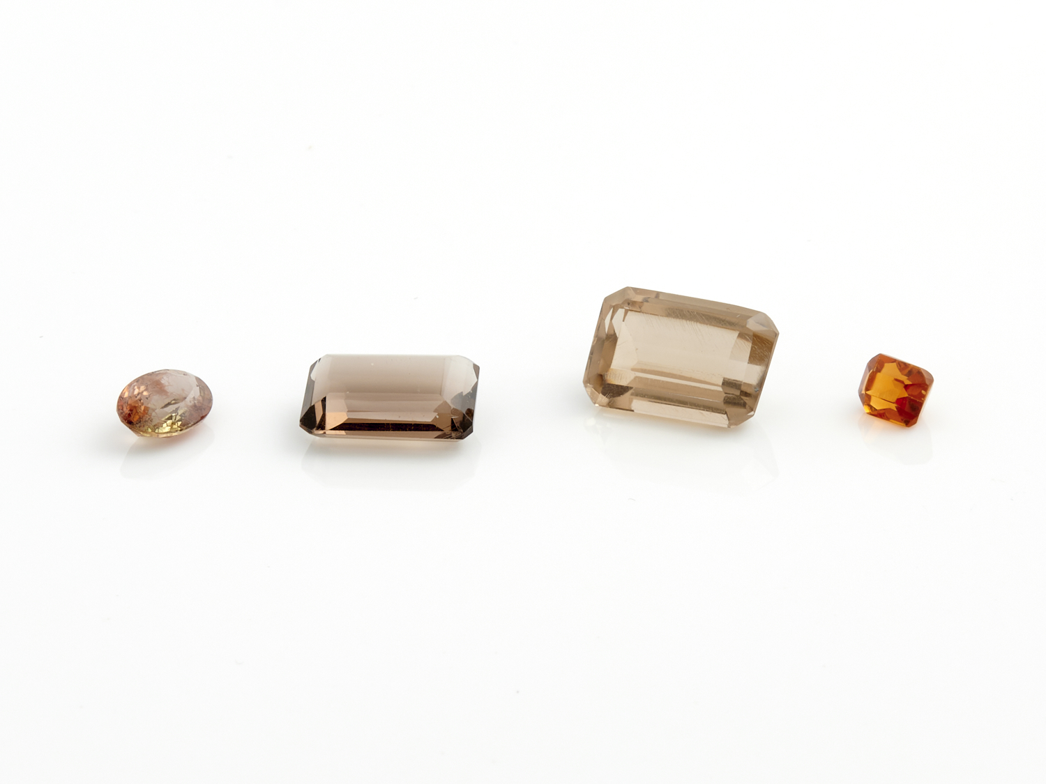 A COLLECTION OF FOUR LOOSE GEM STONES, INCLUDING TWO SMOKEY QUARTZ
