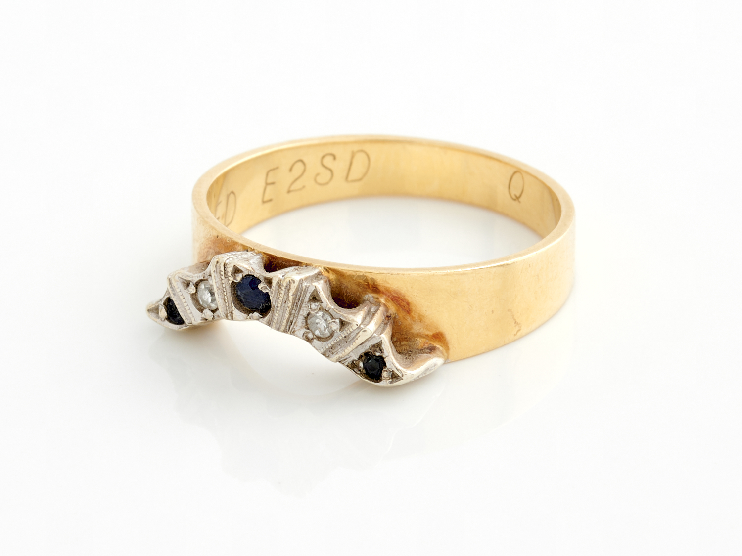 A SAPPHIRE AND DIAMOND BAND RING IN 18CT GOLD, SIZE Q, 4.2GMS