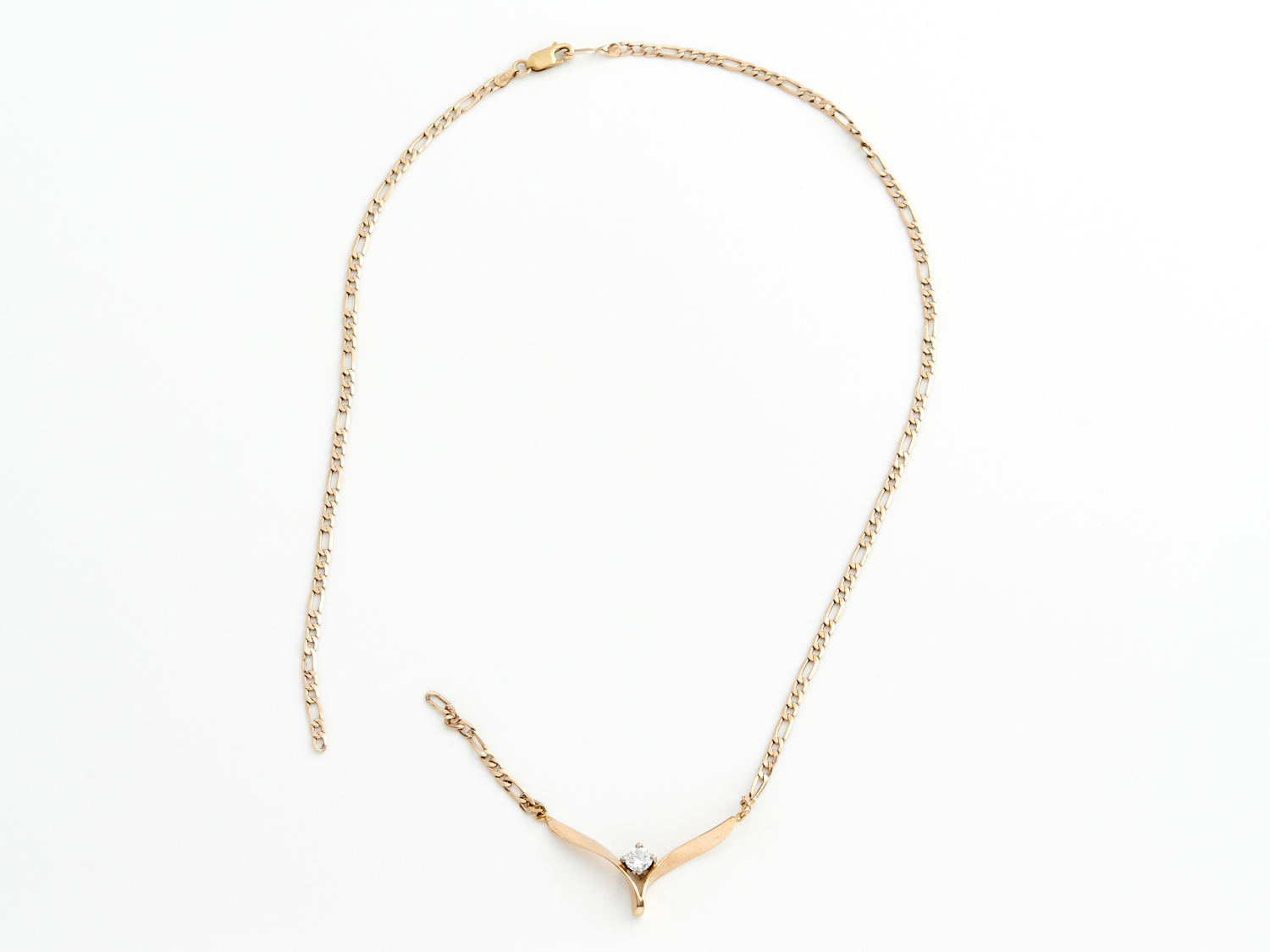 A WHITE STONE PENDANT NECKLACE IN 14CT GOLD, 6.8GMS, A/F