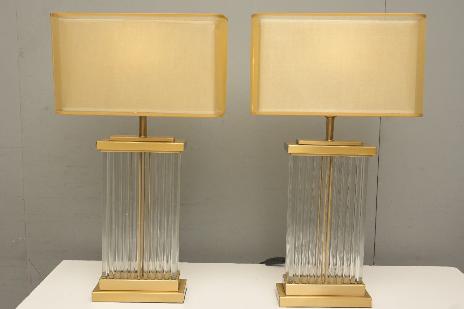 A PAIR OF ART DECO STYLE BRASS AND GLASS TABLE LAMPS (A/F) (72H X 40W X 21D CM) (LEONARD JOEL DELIVERY SIZE: LARGE)