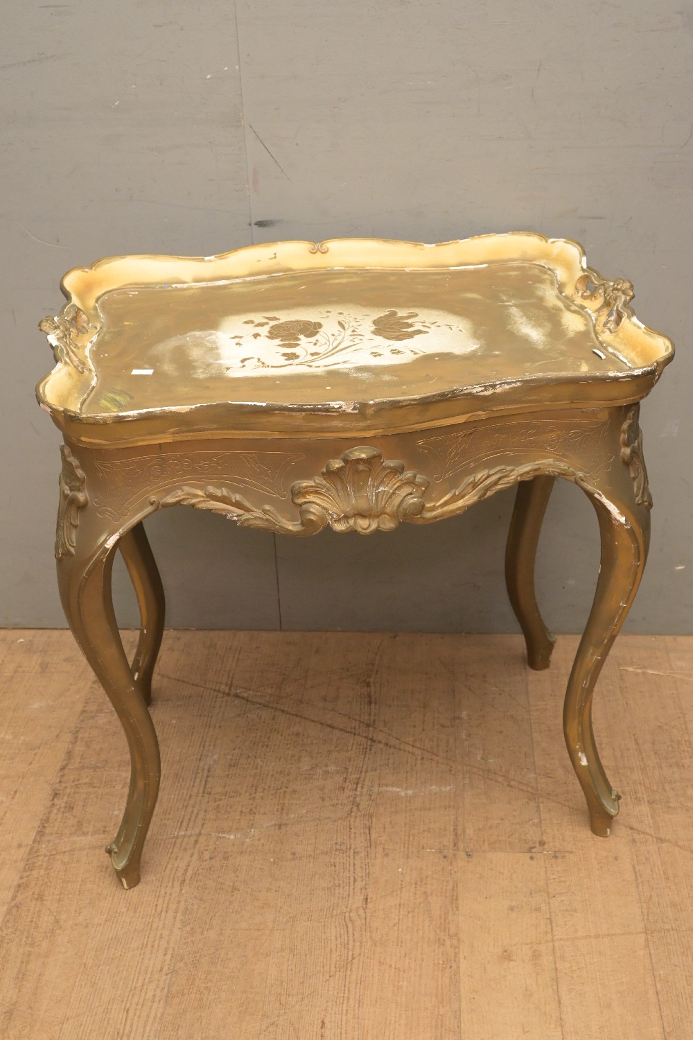 A 1940s FLORENTINE GILT TRAY TABLE (A/F) (66H X 66W X 50D CM) (LEONARD JOEL DELIVERY SIZE: LARGE)