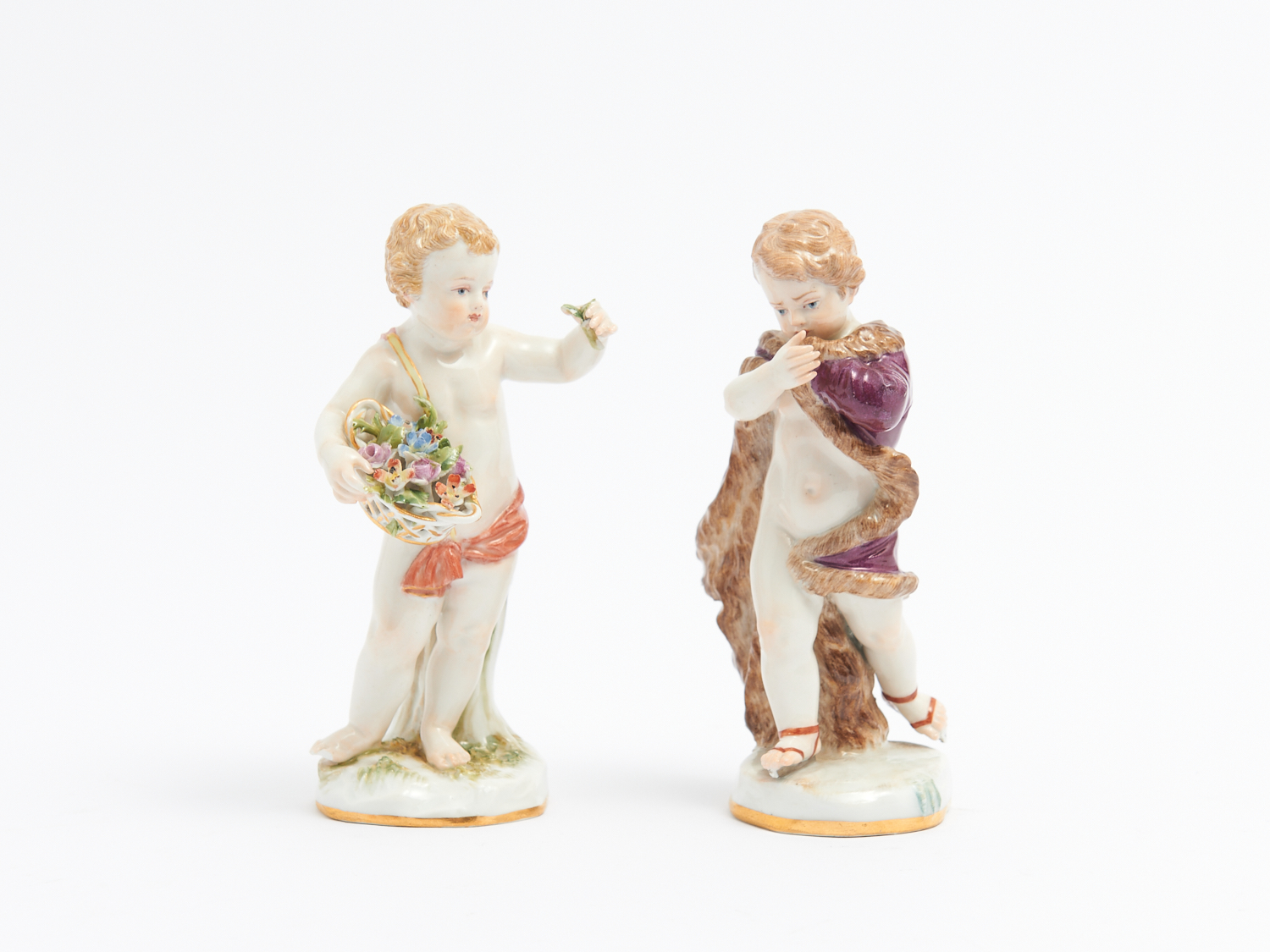 A PAIR OF MEISSEN PUTTI FIGURES H.13CM (EACH) (A/F), LEONARD JOEL DELIVERY SIZE: SMALL