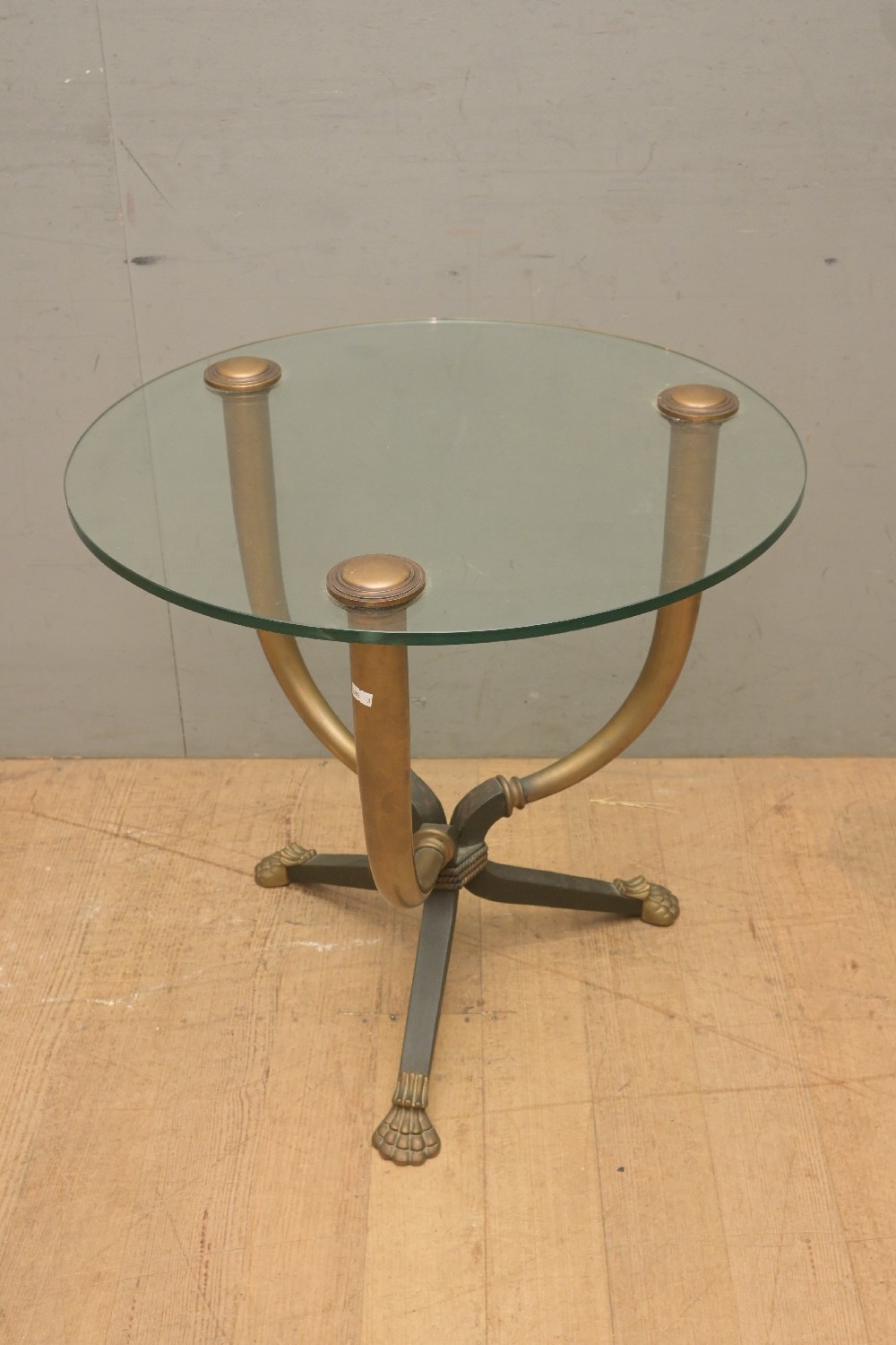 AN ART NOUVEAU STYLE BRASS AND GLASS COFFEE TABLE (A/F) (61H X 65DIAM CM) (LEONARD JOEL DELIVERY SIZE: LARGE)