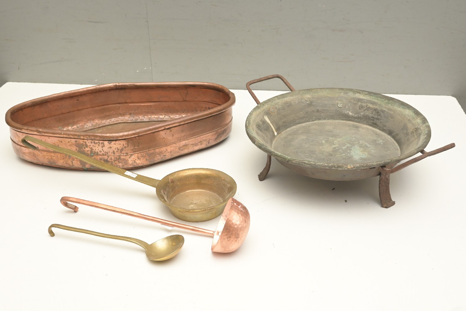 A GROUP OF OLD FRENCH COOKING UTENSILS (A/F) (10H X 48W X 28D CM) (LEONARD JOEL DELIVERY SIZE: LARGE)