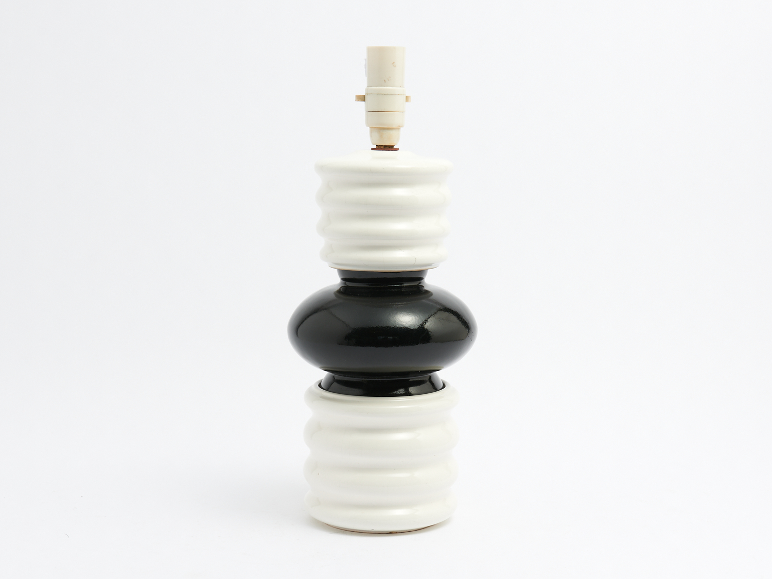 A 1970S BLACK AND WHITE CERAMIC BITOSSI CYLINDER LAMP BASE (A/F) H.43CM, LEONARD JOEL DELIVERY SIZE: MEDIUM