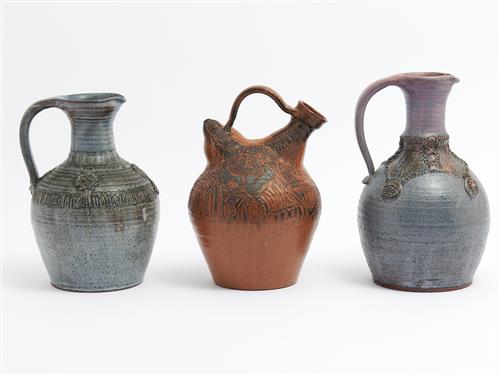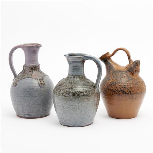 A COLLECTION OF THREE AUSTRALIAN SIGNED GLAZED POTTERY EWER URNS H.27CM (TALLEST), LEONARD JOEL DELIVERY SIZE: LARGE