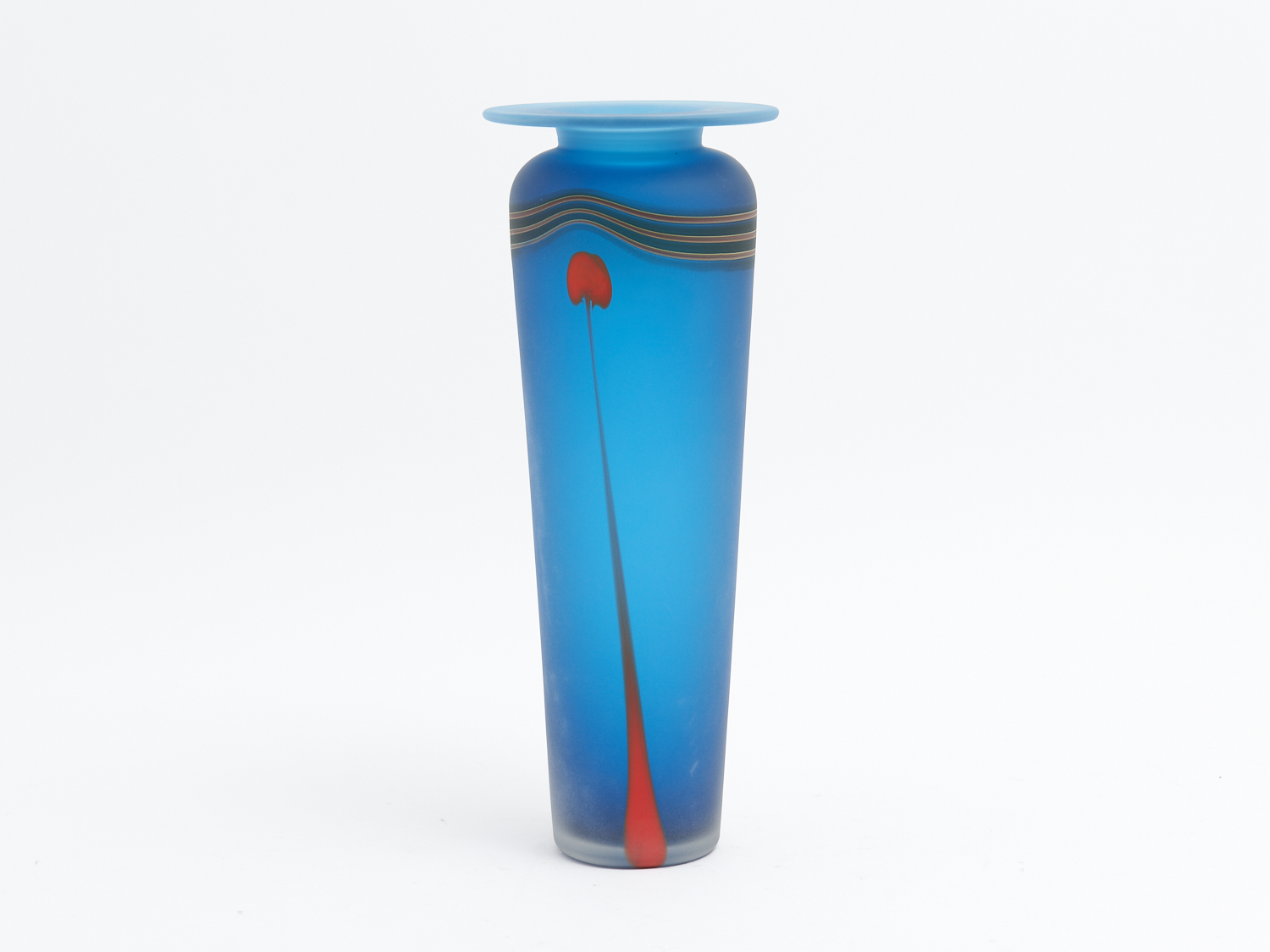 A SIGNED DENIZEN ART GLASS TRAILED SATIN GLASS FINISHED VASE H.29CM, LEONARD JOEL DELIVERY SIZE: MEDIUM