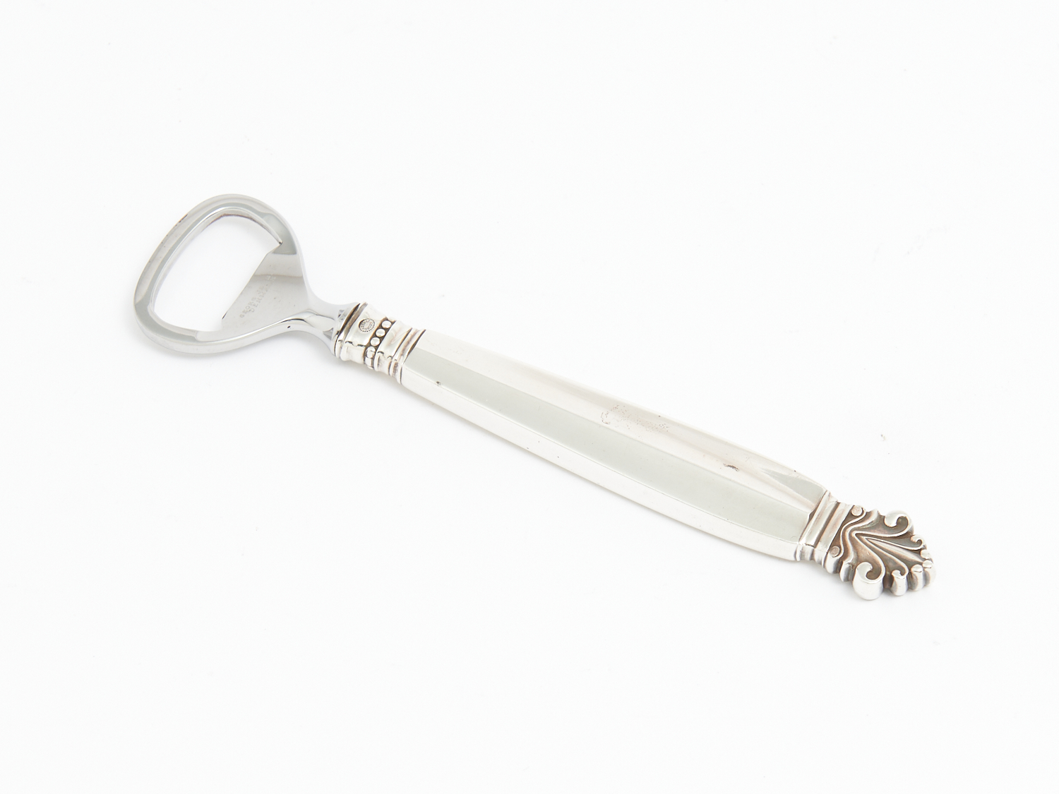 A GEORGE JENSEN STERLING SILVER HANDLED ACORN PATTERN BOTTLE OPENER 52G L.16CM, LEONARD JOEL DELIVERY SIZE: SMALL