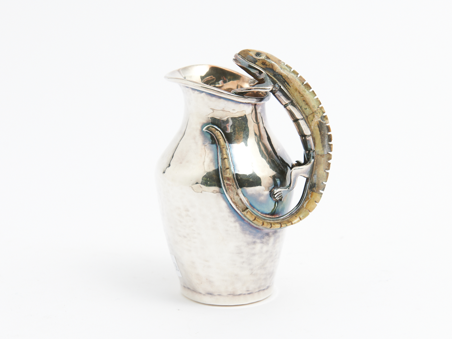A 1940S MEXICAN 800 SILVER AND STONE SET LIZARD JUG 206G (TOTAL WEIGHT) H.13CM, LEONARD JOEL DELIVERY SIZE: SMALL